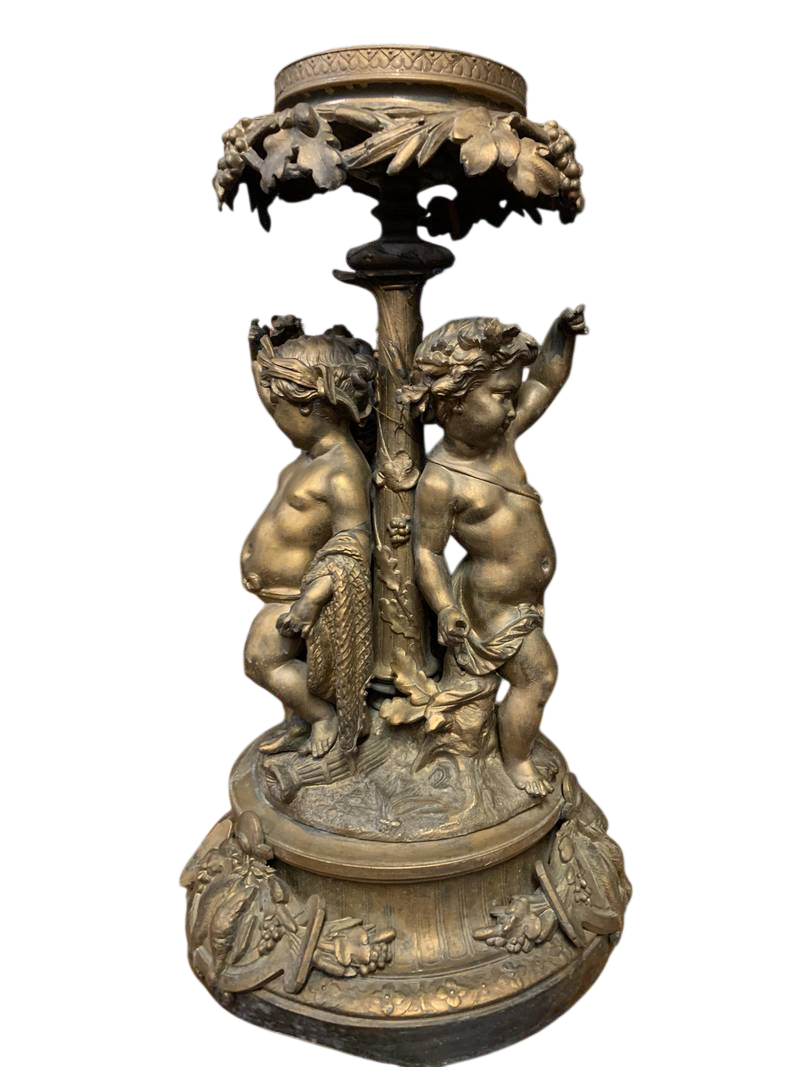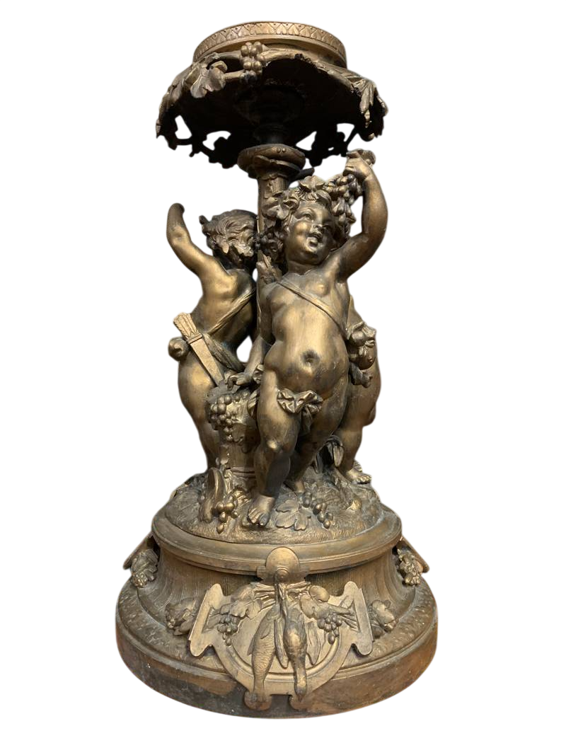 Antico centrotavola grande coppa Napoleone III putti antimonio epoca XIX secolo