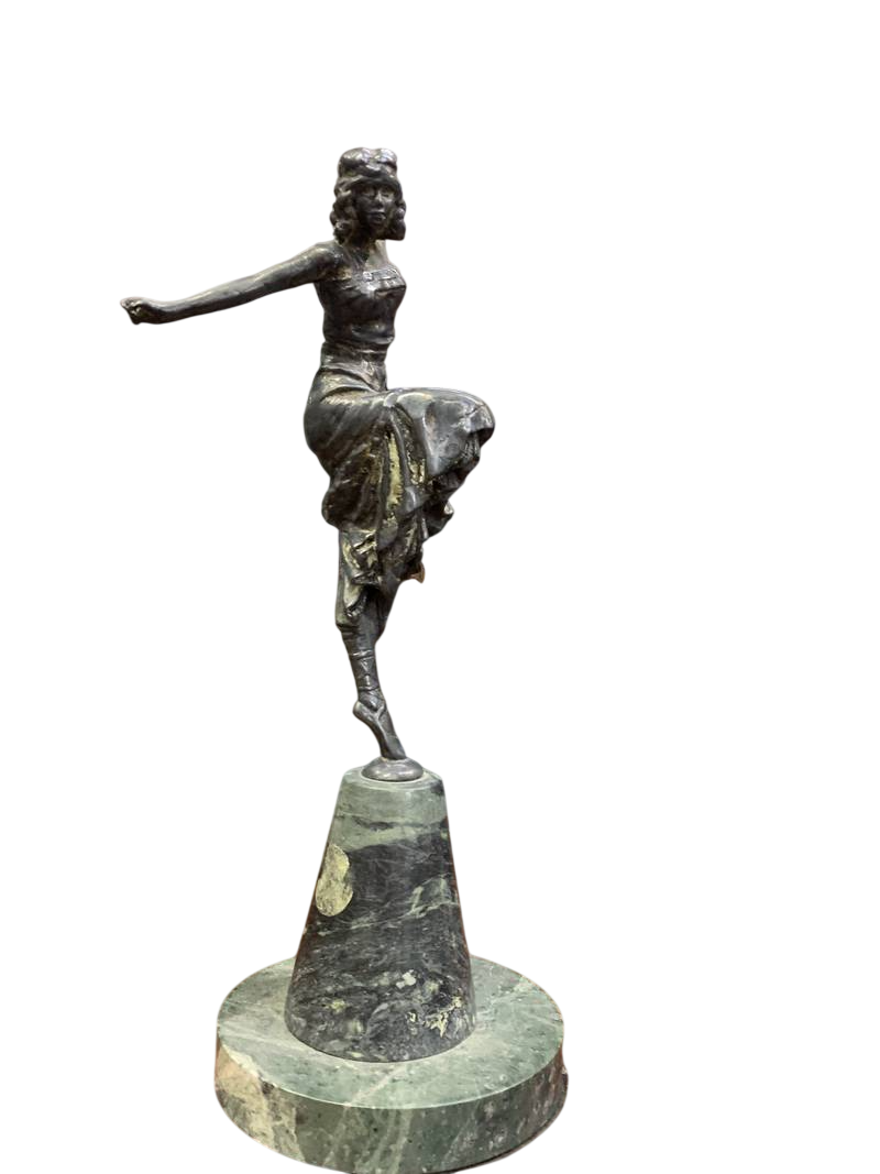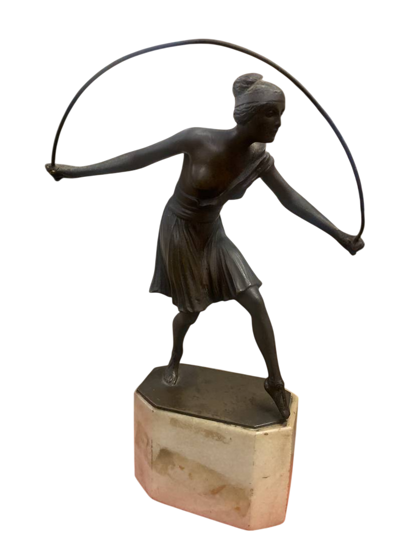 Scultura ballerina con cerchio Art Deco’ Art Nouveau anni 20 30 su base in marmo