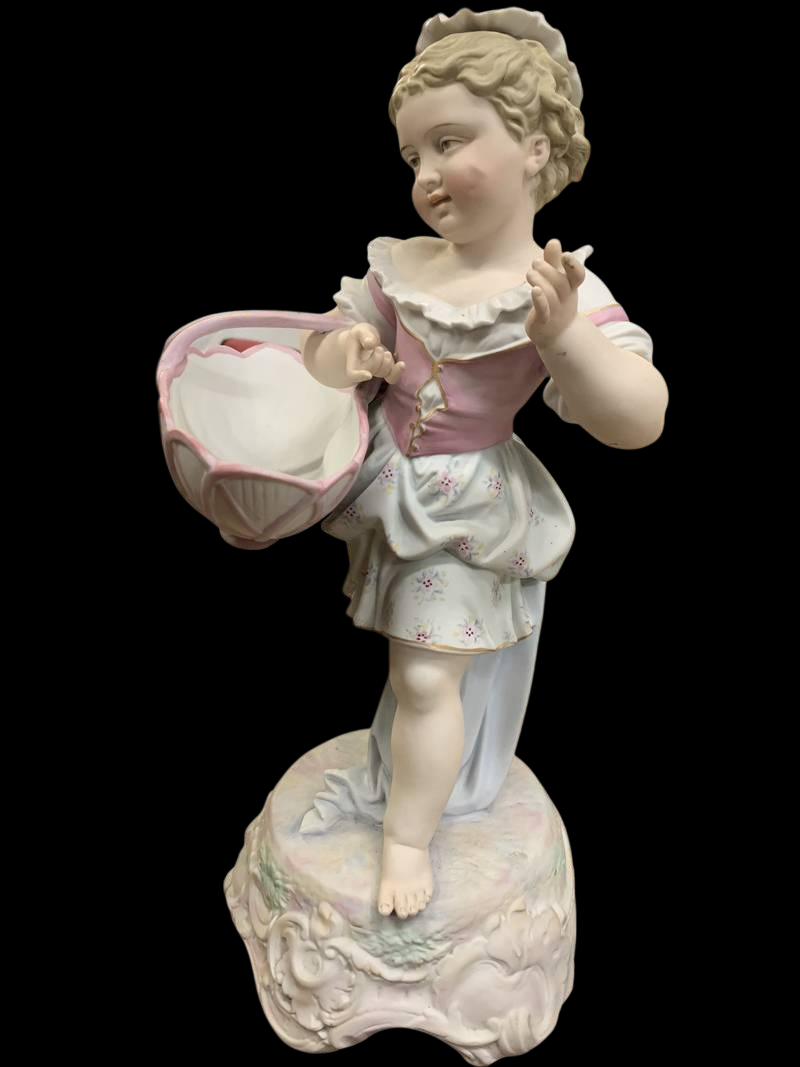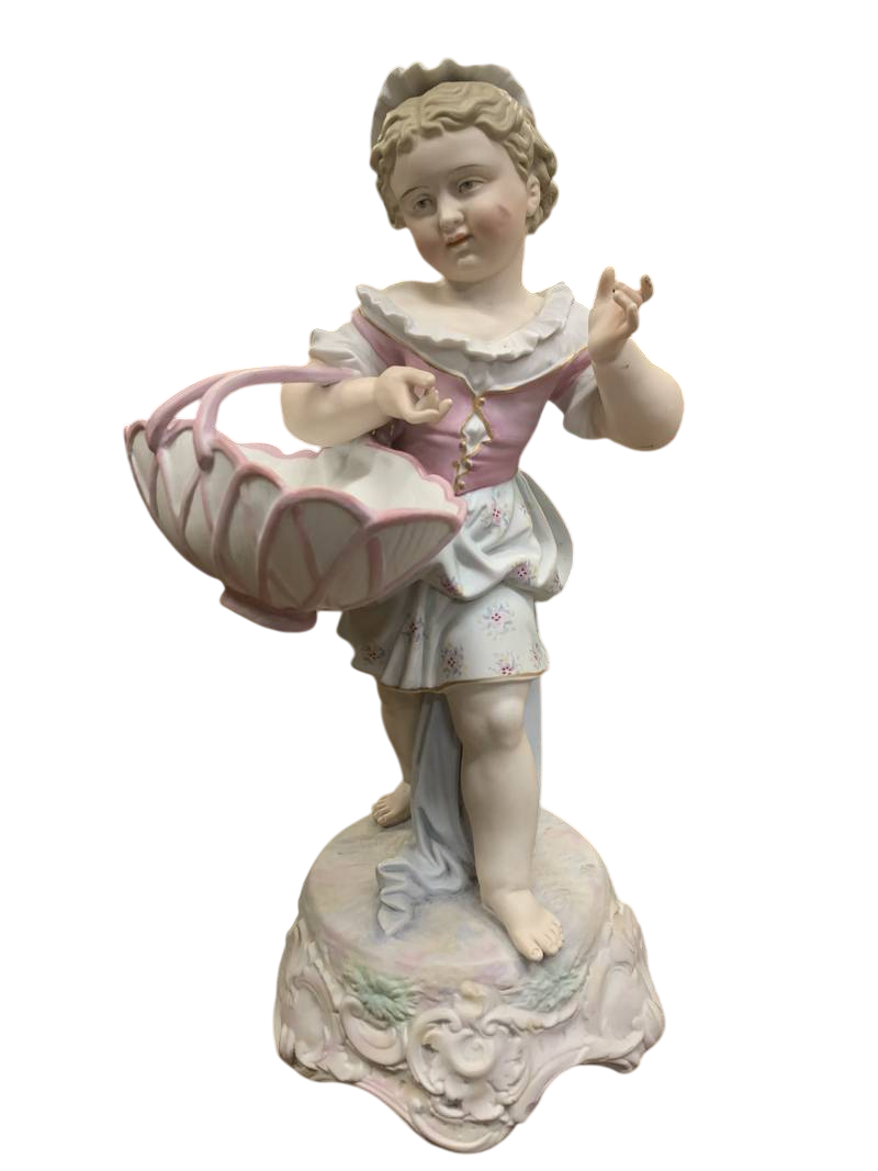 Statuina bimba con cestino e cappello porcellana di Meissen epoca 800