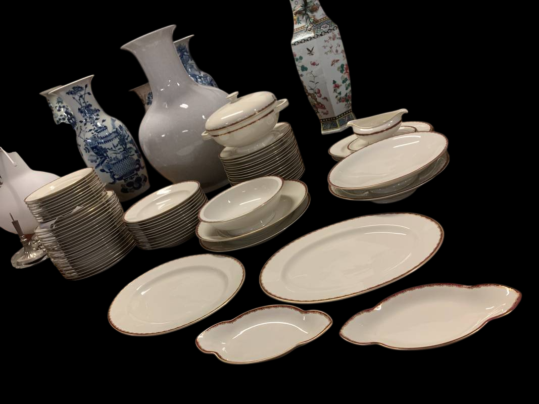 Servizio da tavolo piatti porcellana fine Rosenthal bordo rosso ed oro zecchino 12 posti completo