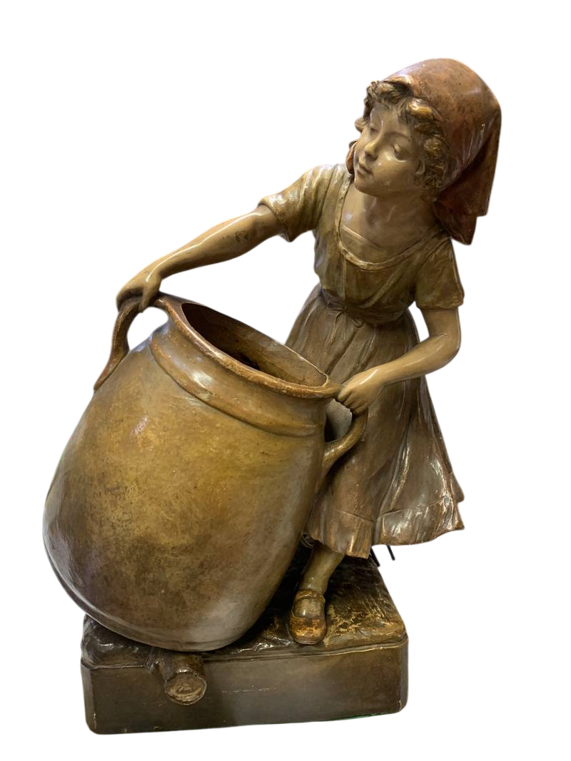 Grande scultura bimba con orcia in terracotta Vienna Friedrich GOLDSCHEIDER (1845-1897)