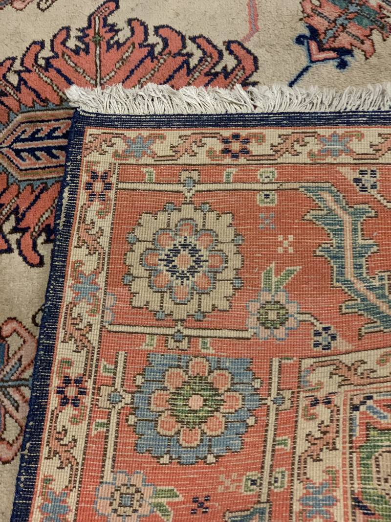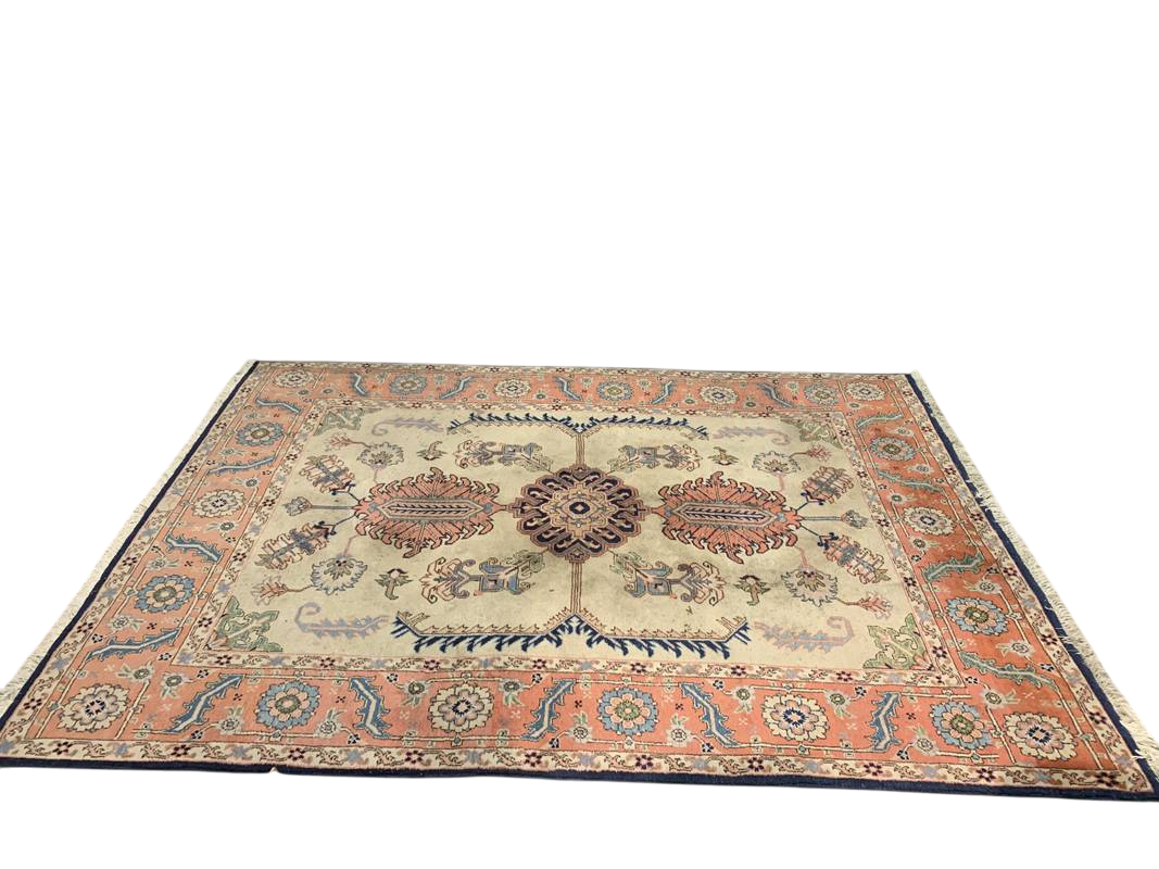 Antico tappeto persiano blu annodato a mano medaglione centrale 280 x 200