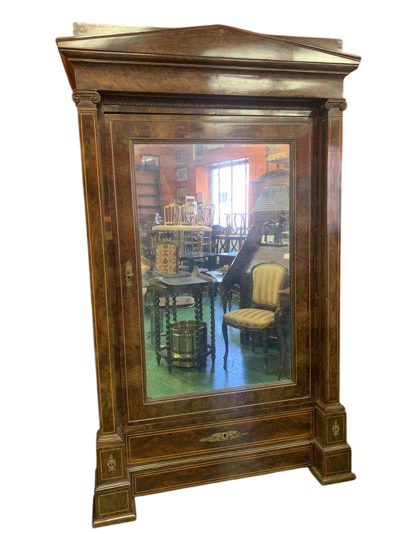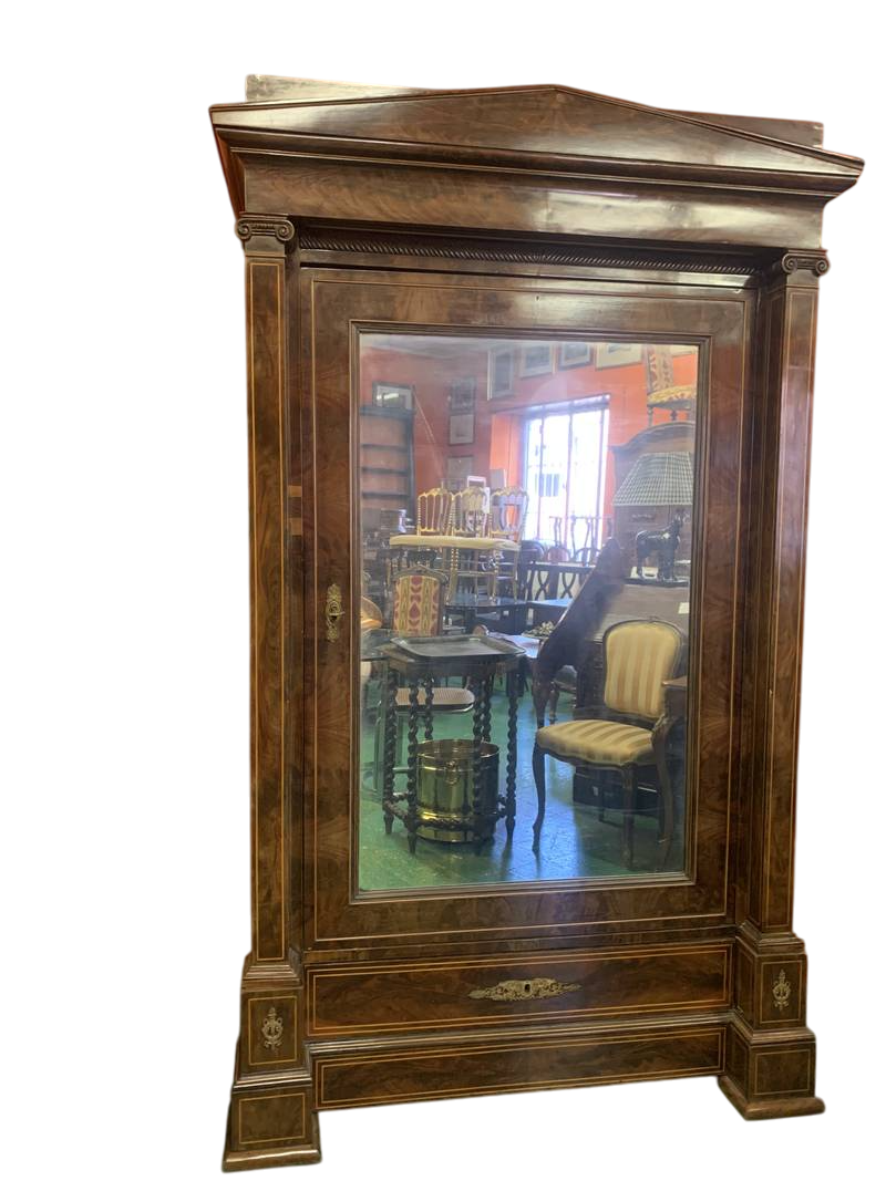 Antico armadio ad un’anta 1850 in palissandro con specchiera grande qualita’ Parigi
