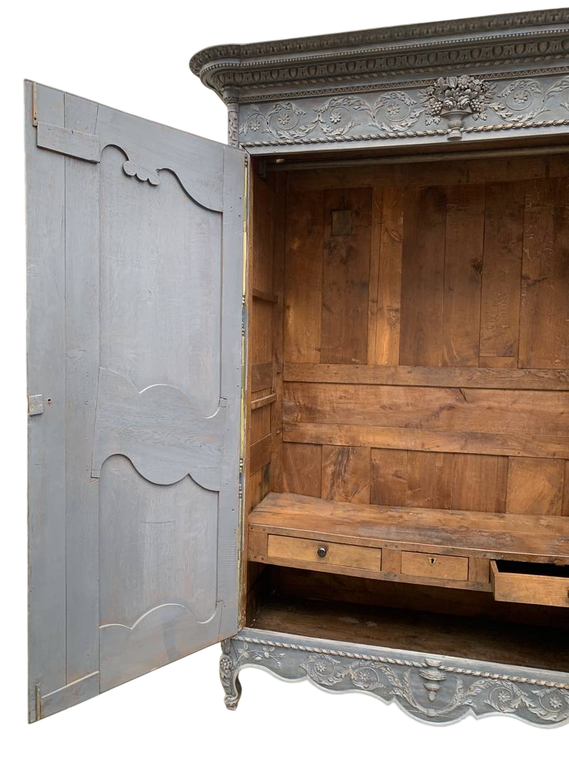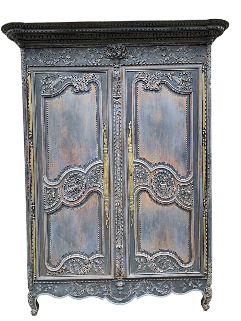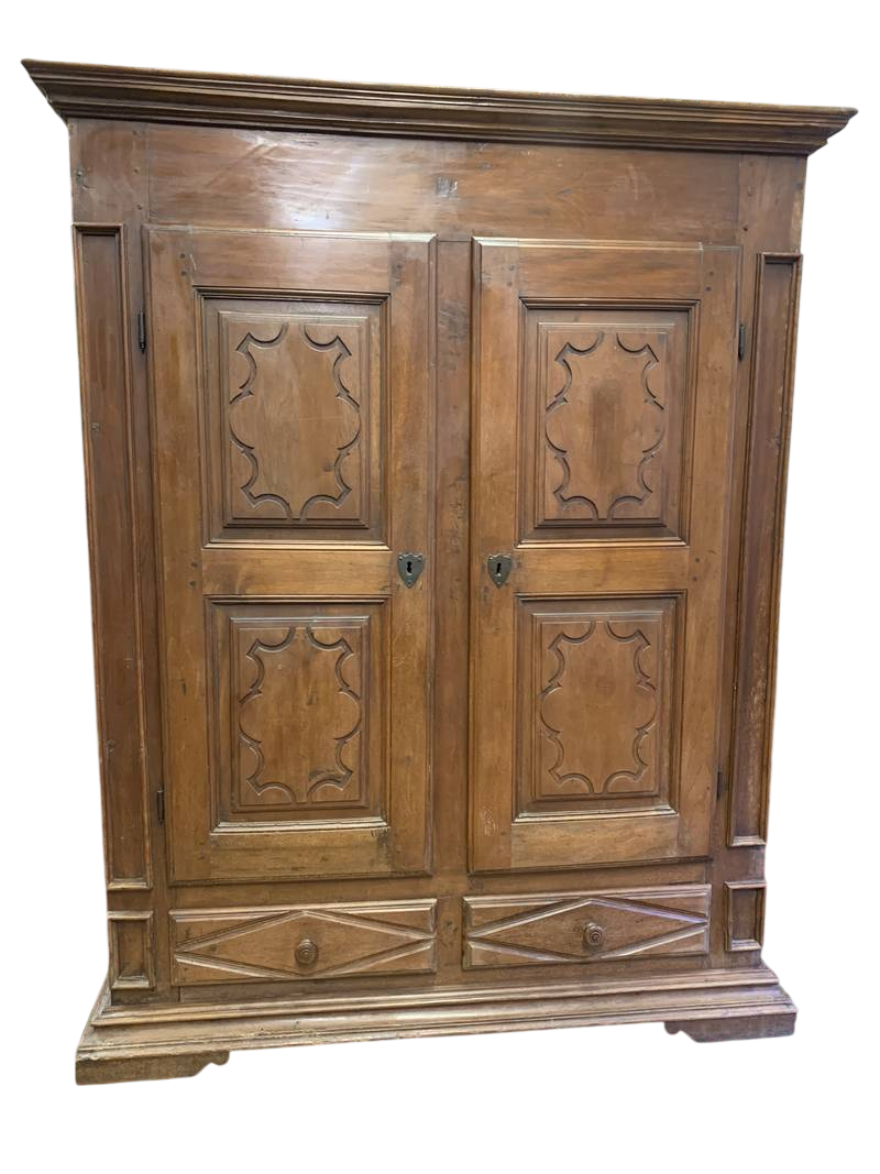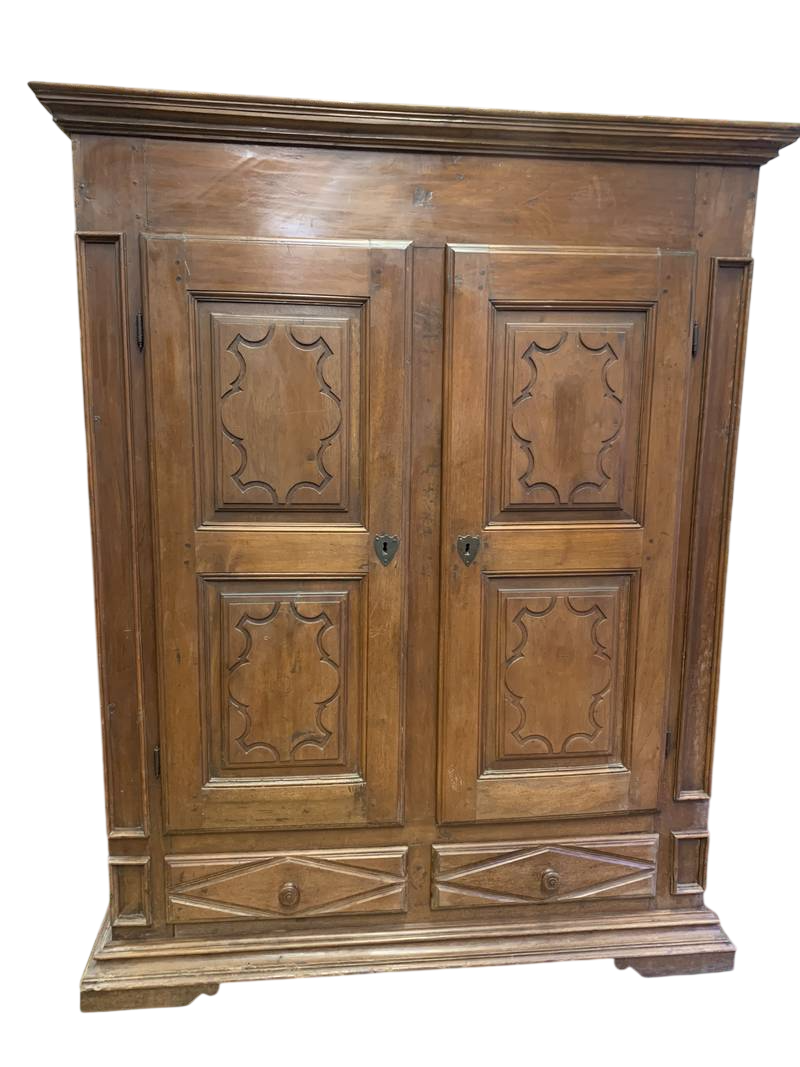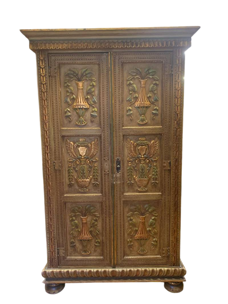 Antico armadio a due ante legno intagliato e laccato finiture dorate fine 800