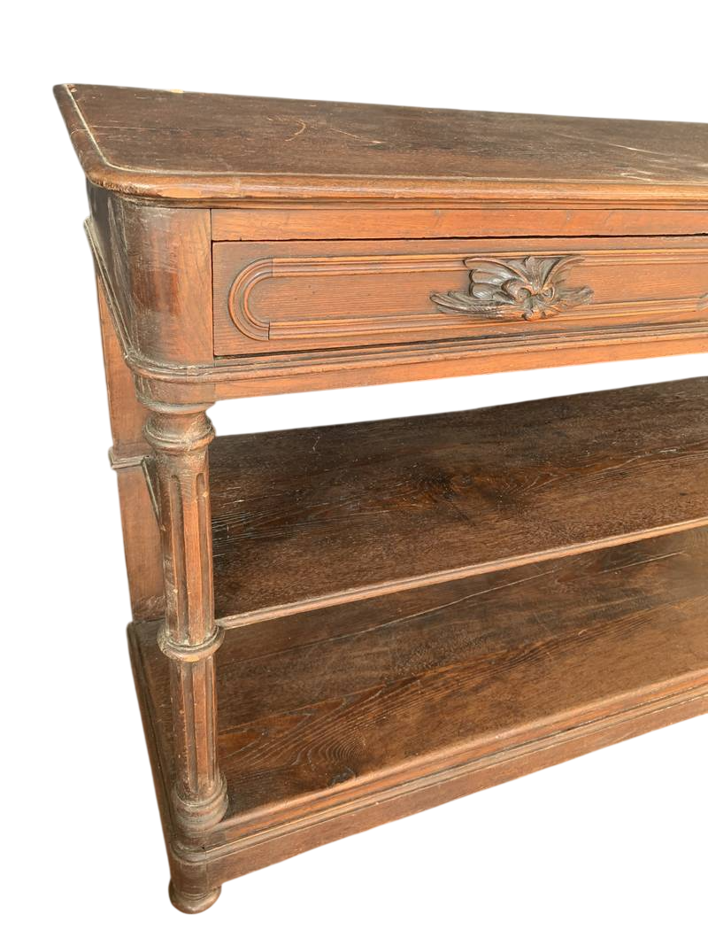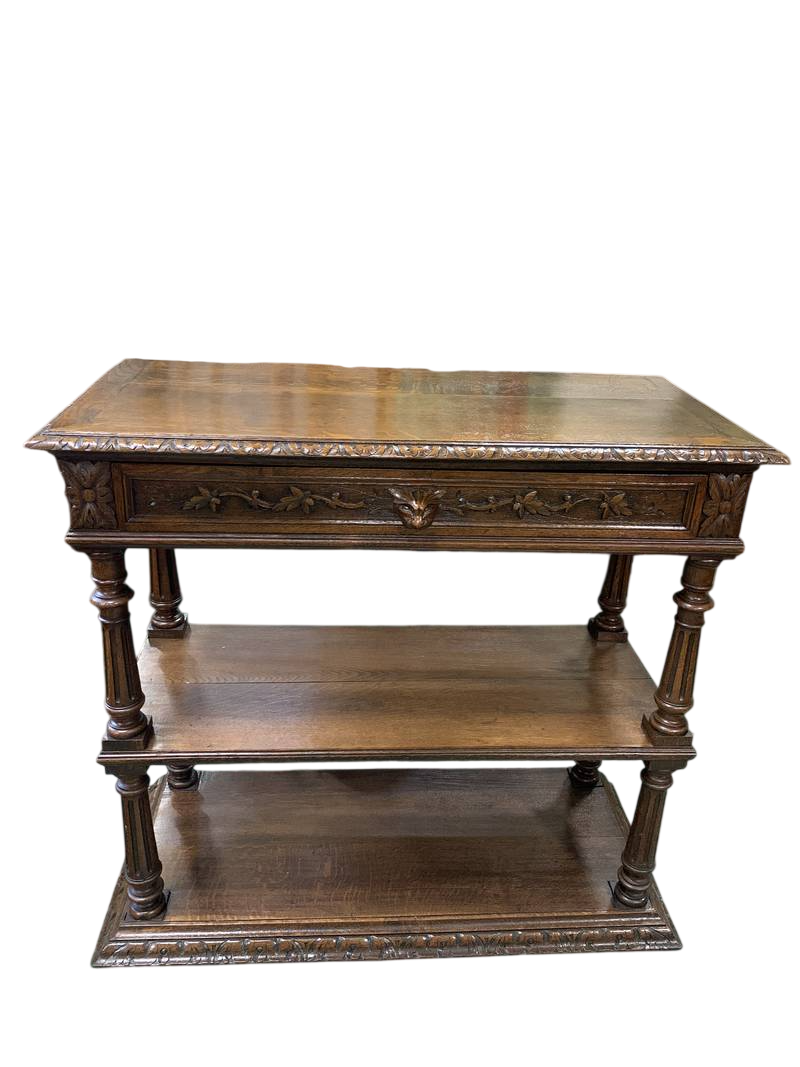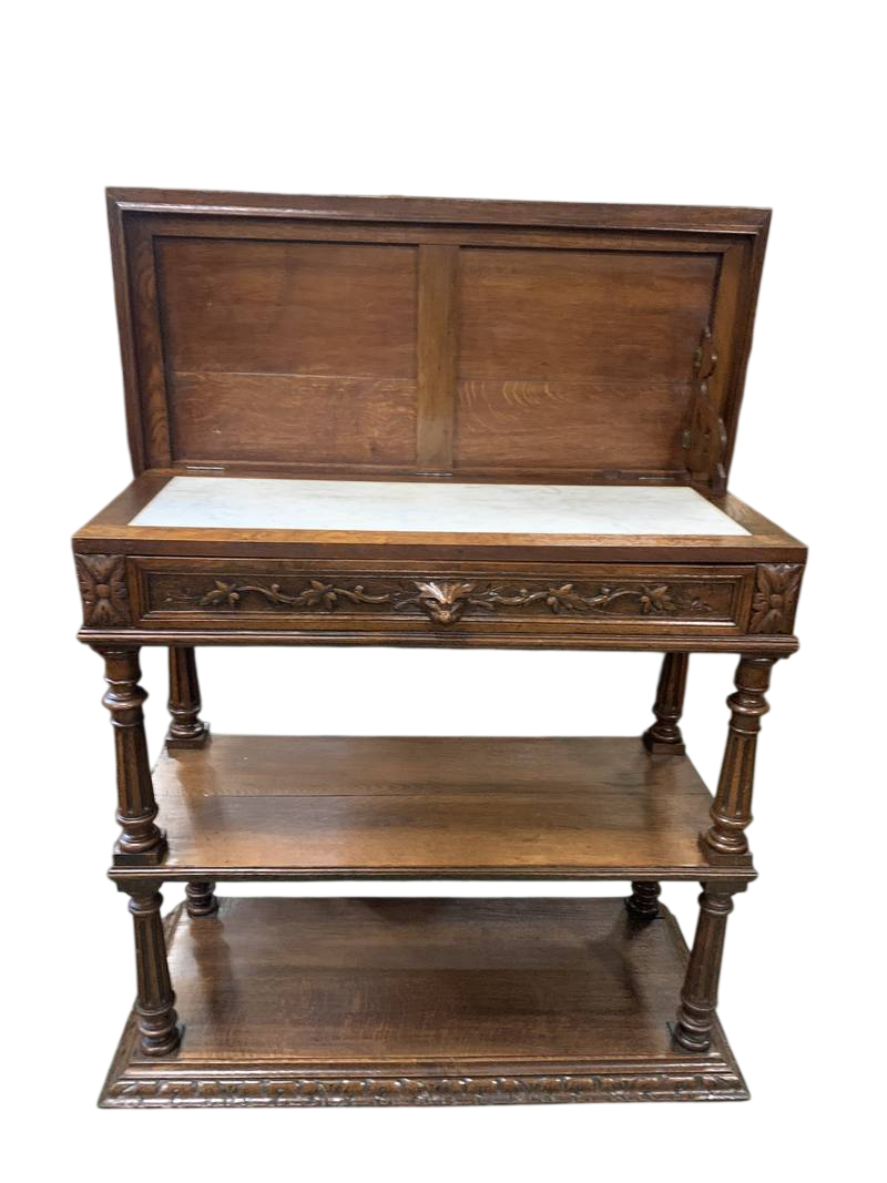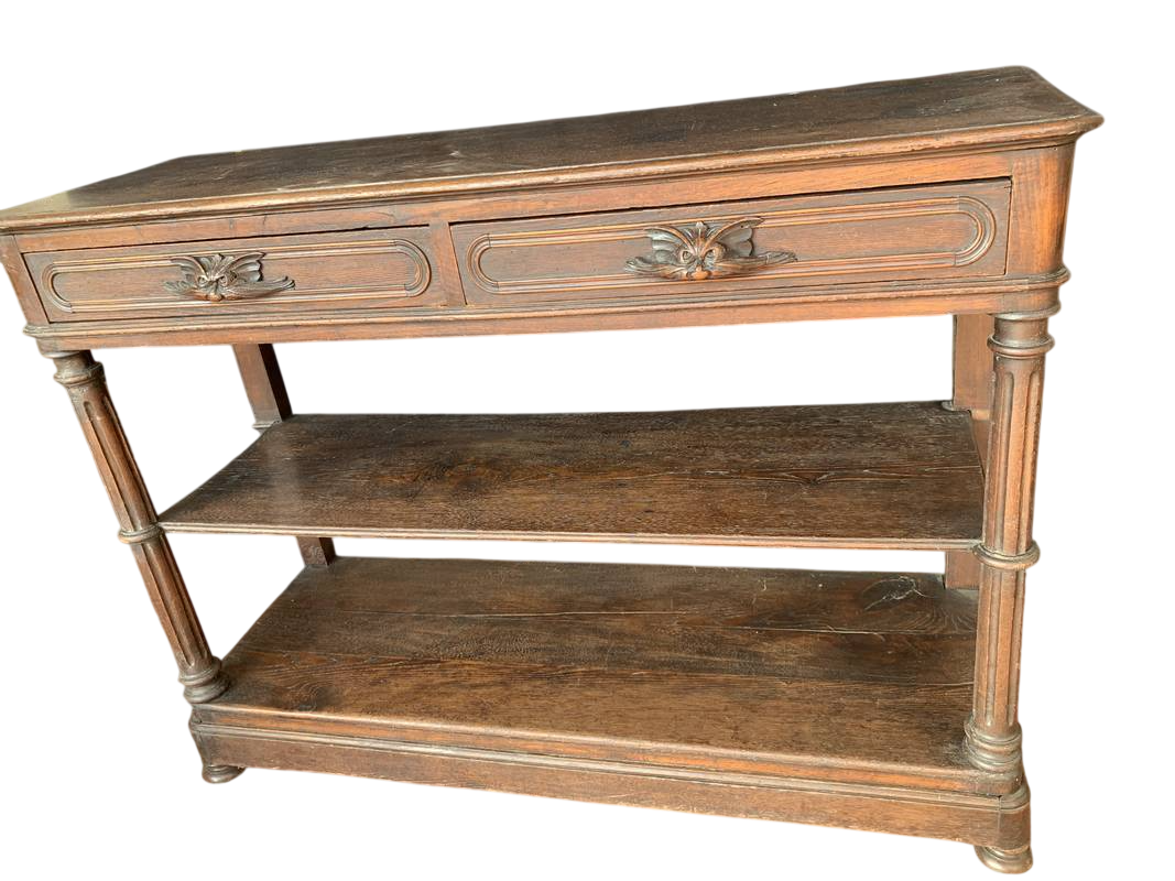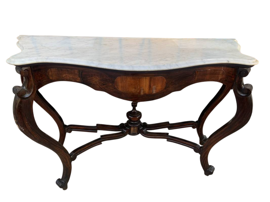 Antico tavolo da muro consolle dell’800 in noce con piano marmo colonne a torchon