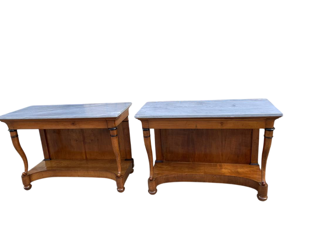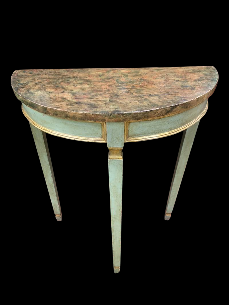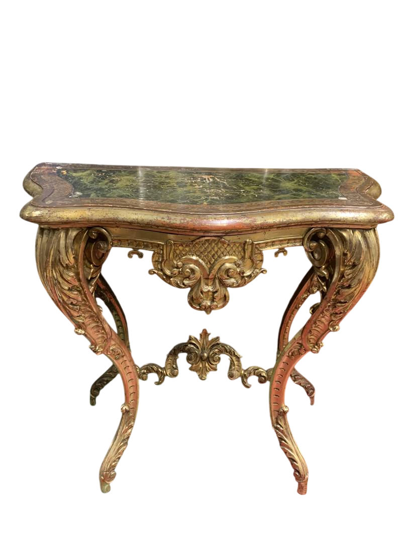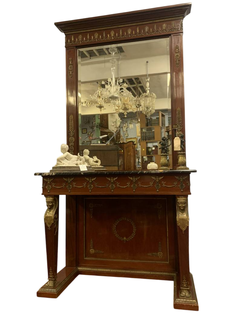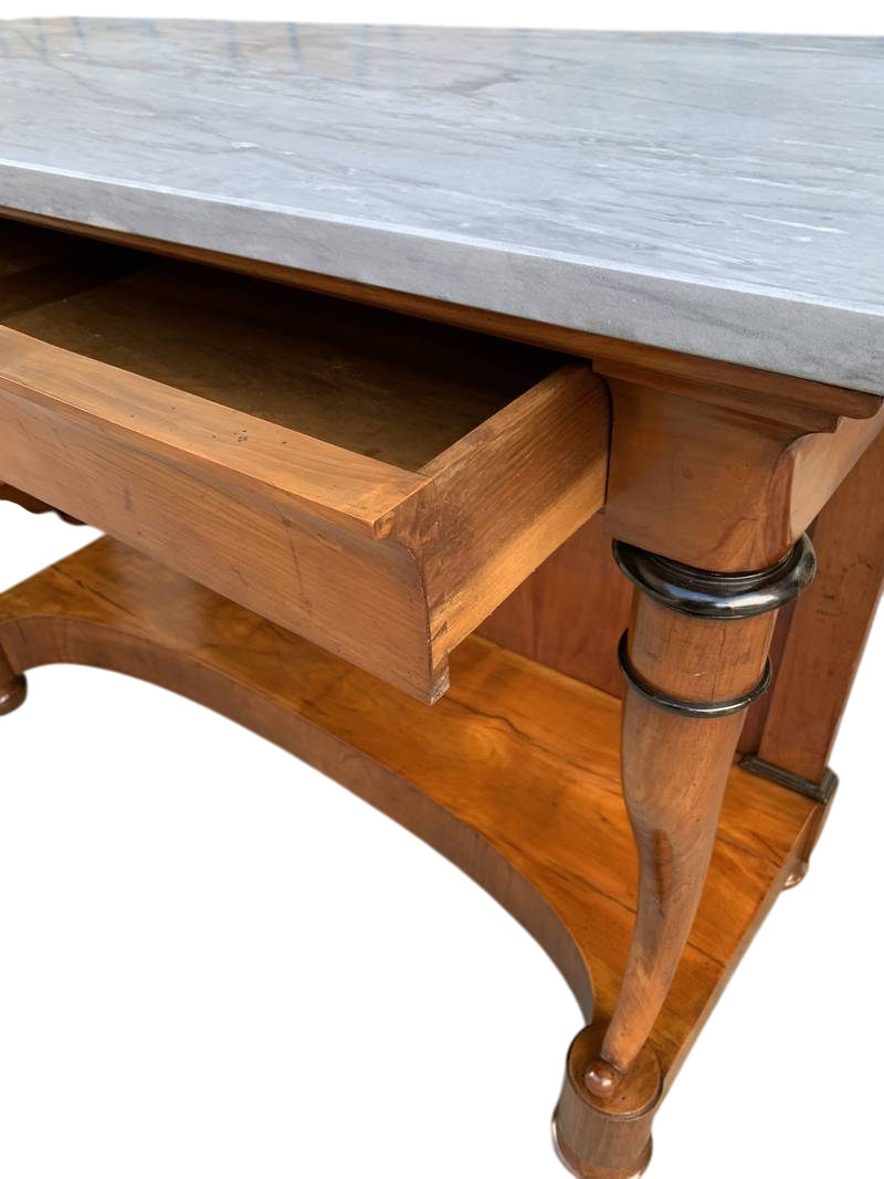 Antico tavolo consolle Impero colonne con bronzi dorati bocchette leonine epoca XIX secolo