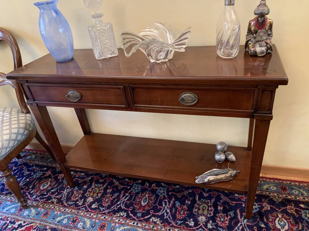 Antico mobile servante inglese in mogano finemente intarsiato Londra 1840 circa