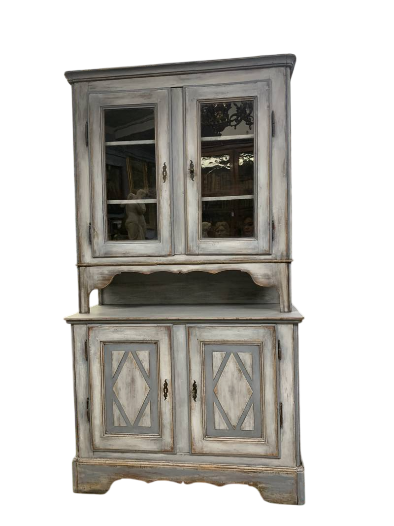 Antica libreria Direttorio a doppio corpo in noce epoca XIX secolo vetri soffiati