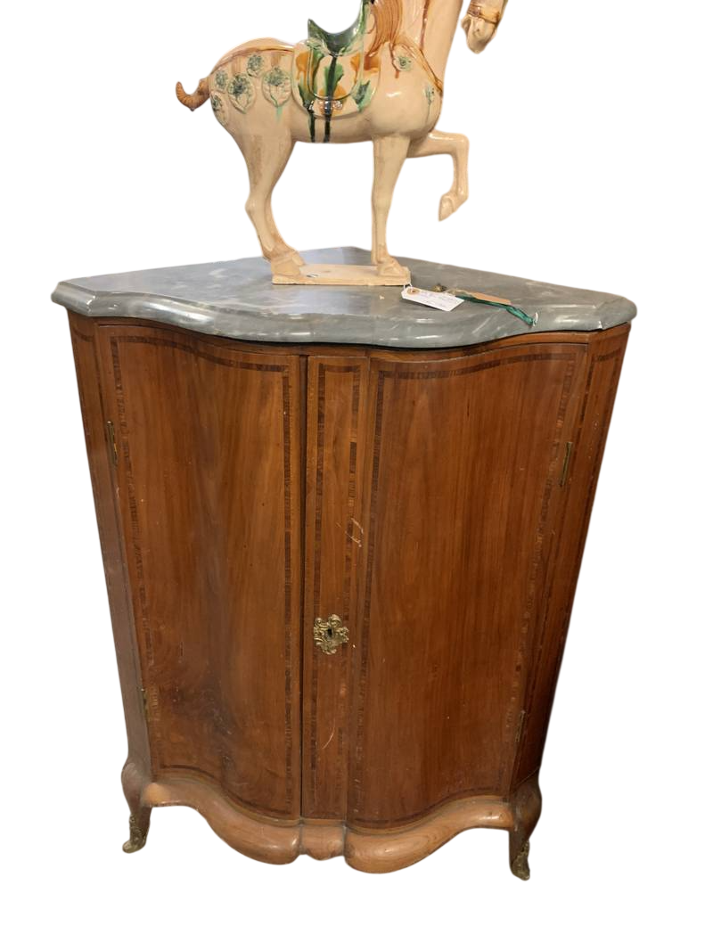 Antica credenza angoliera cantonale in noce intarsiata del 700 secolo piano in marmo Bardiglio