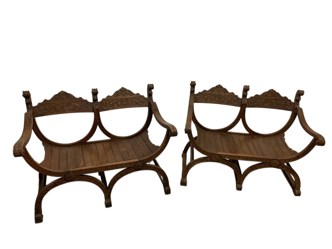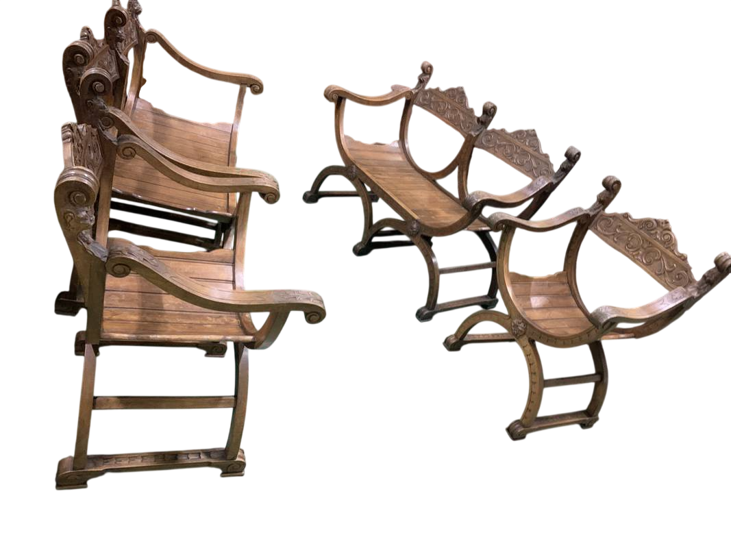2 antiche poltrone Rinascimentali ricca scultura dagli arredi di un castello