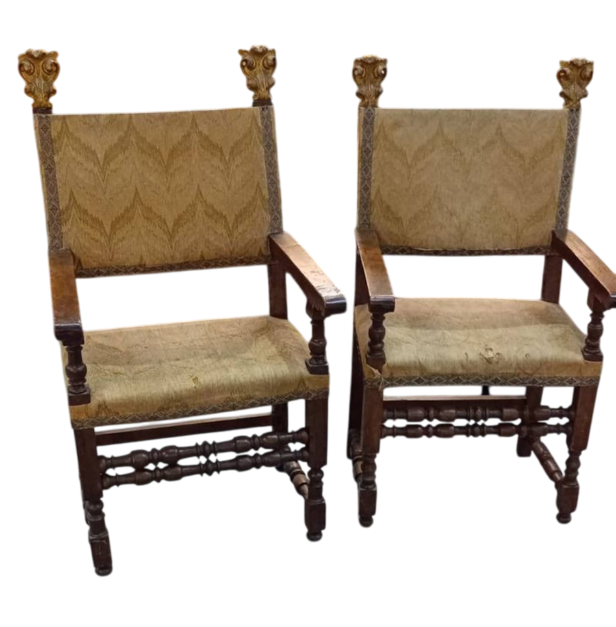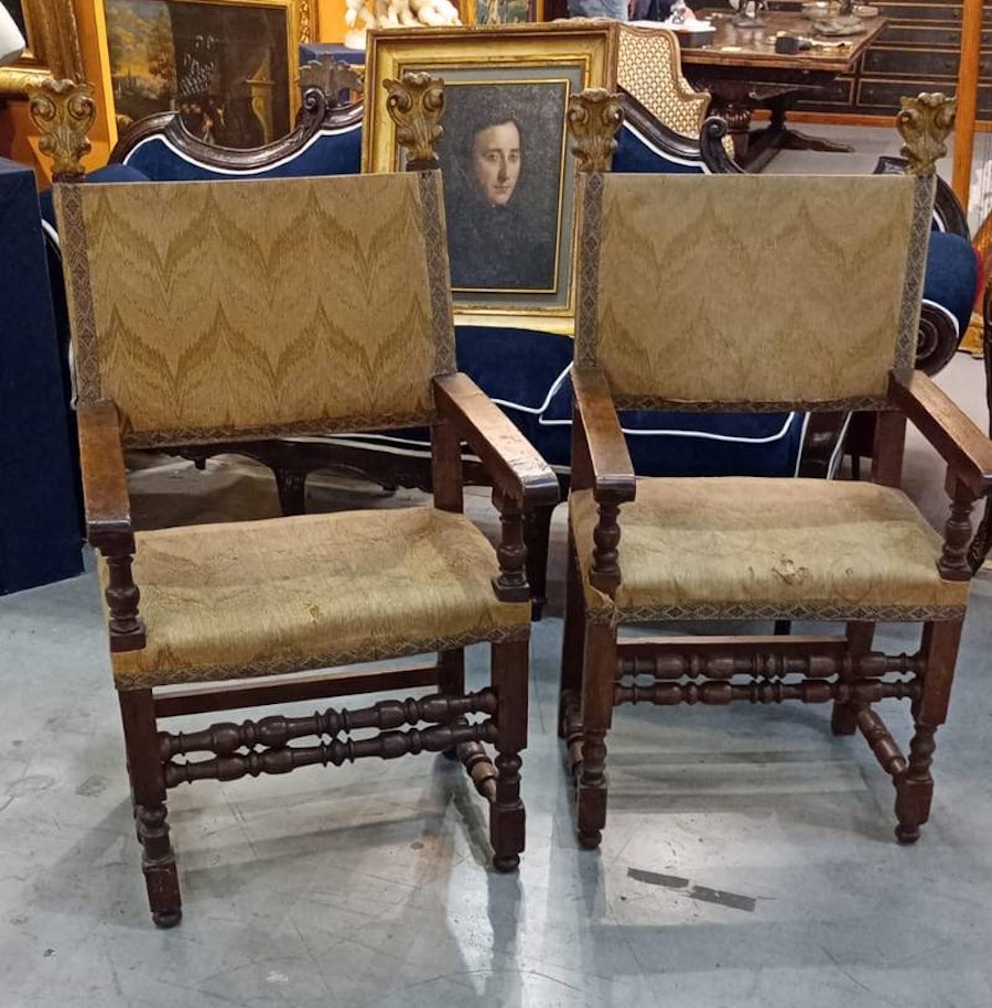 Coppia di antiche poltrone seggioloni troni Luigi XVI inizi del XVIII secolo