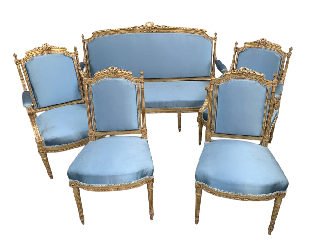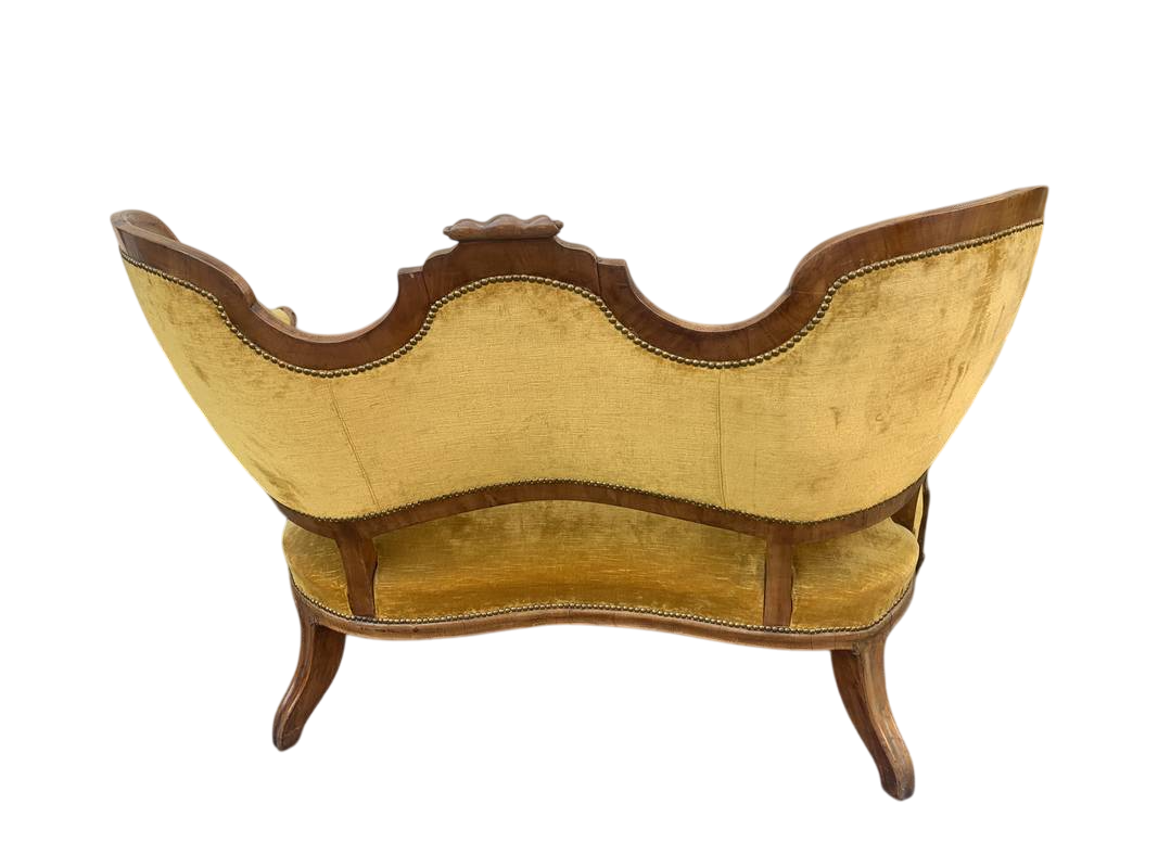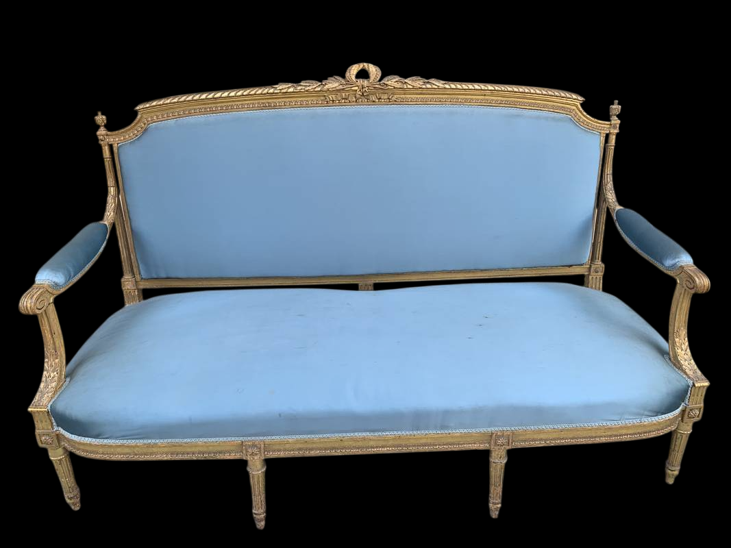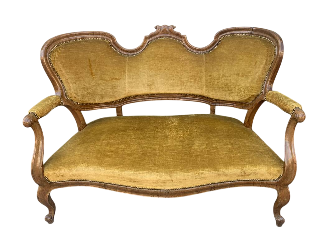 Antico divano roccoco’ in legno intagliato e laccato profili dorati epoca XX secolo