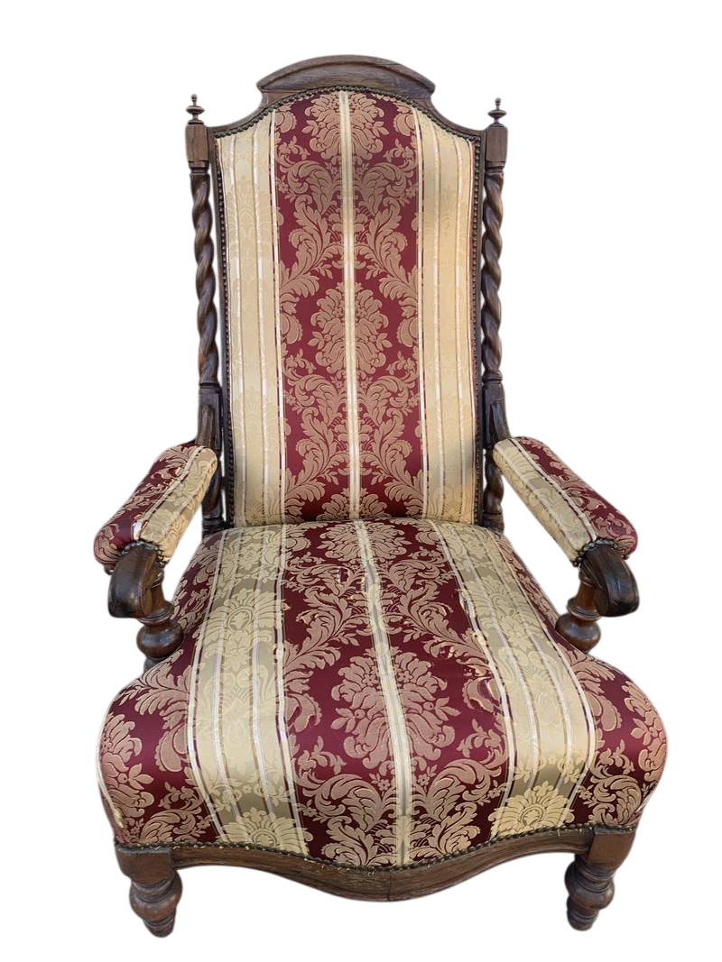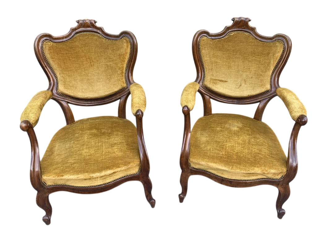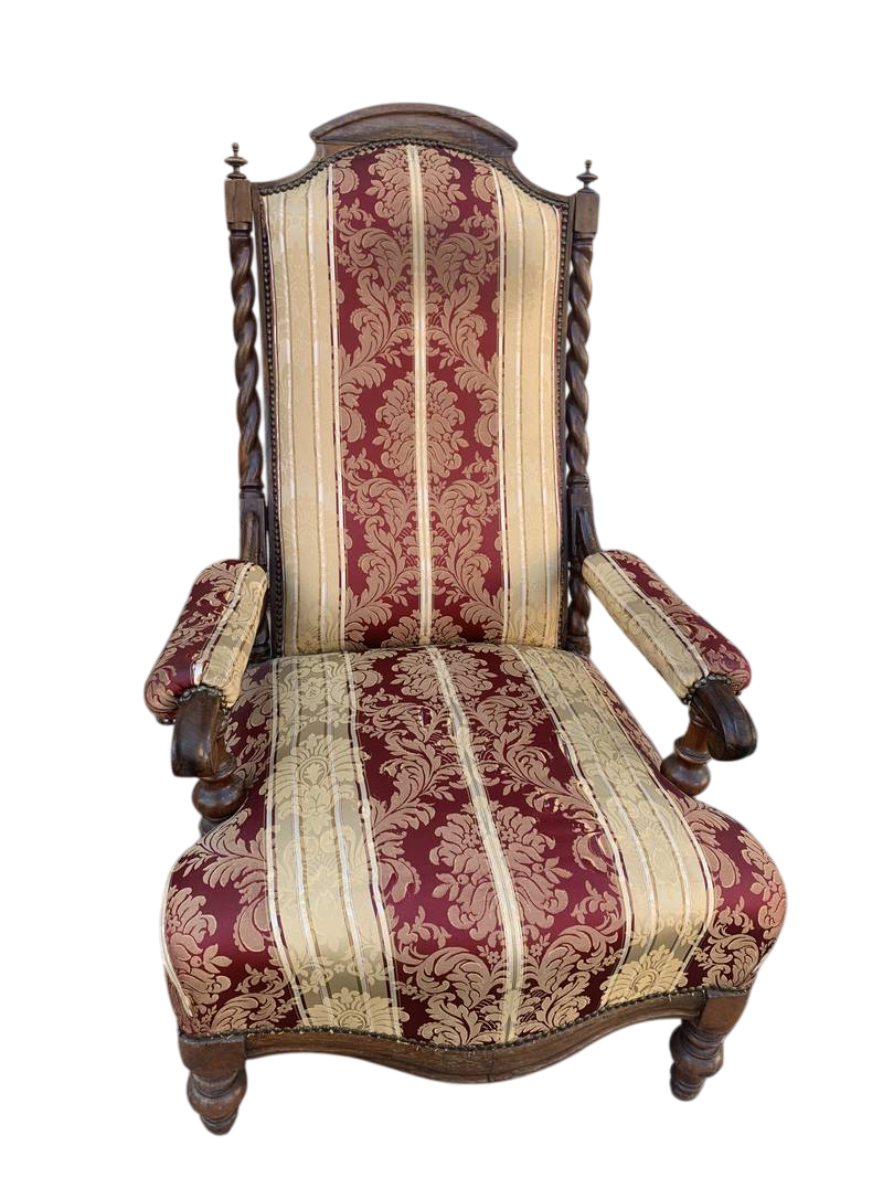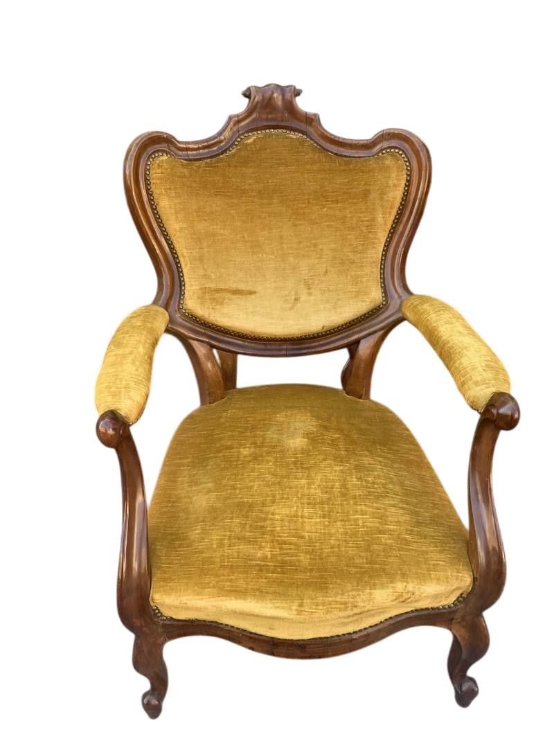 2 antiche poltrone della fine dell’800 in noce braccioli a ricciolo Piemontesi
