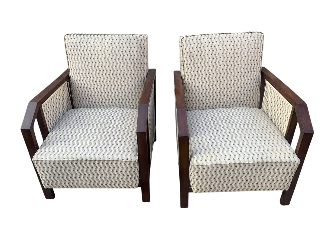 Coppia di poltrone anni 30 Art Deco’ grandi braccioli in legno attribuite a Hoffman