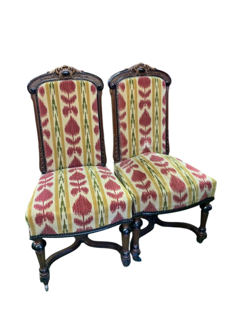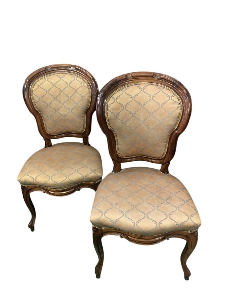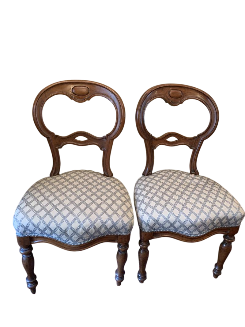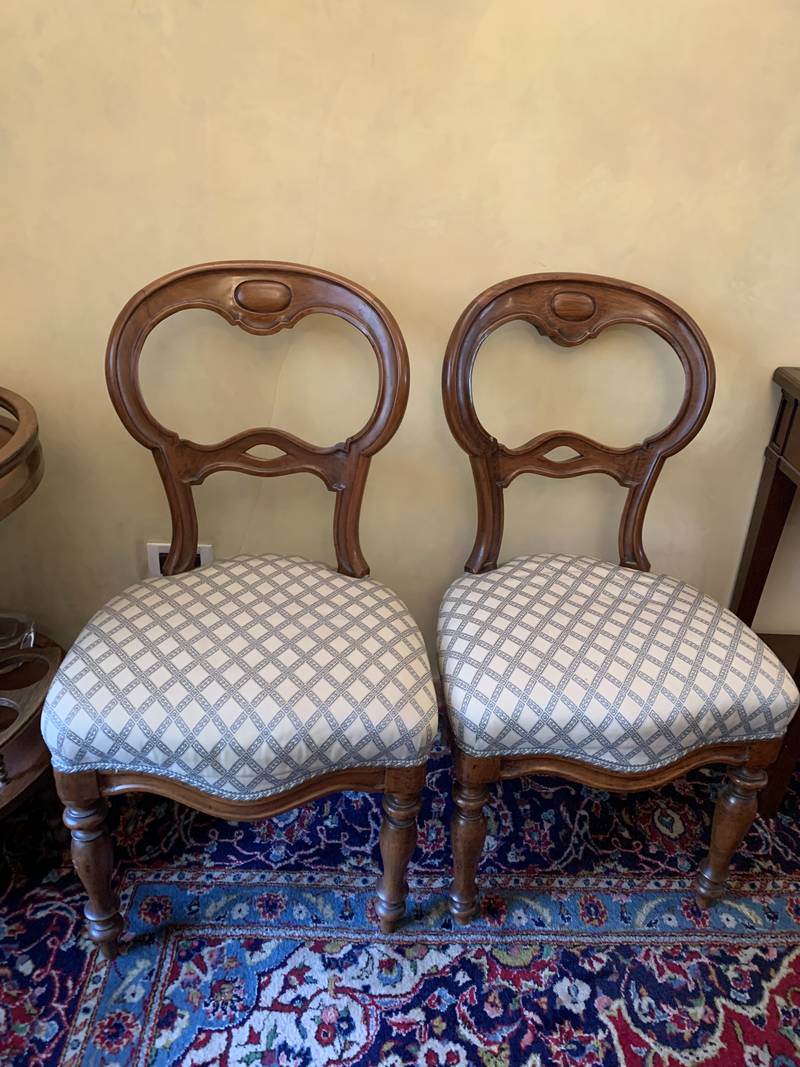 2 antiche sedie poltroncine in noce epoca Luigi Filippo 1870 tessuto azzurro