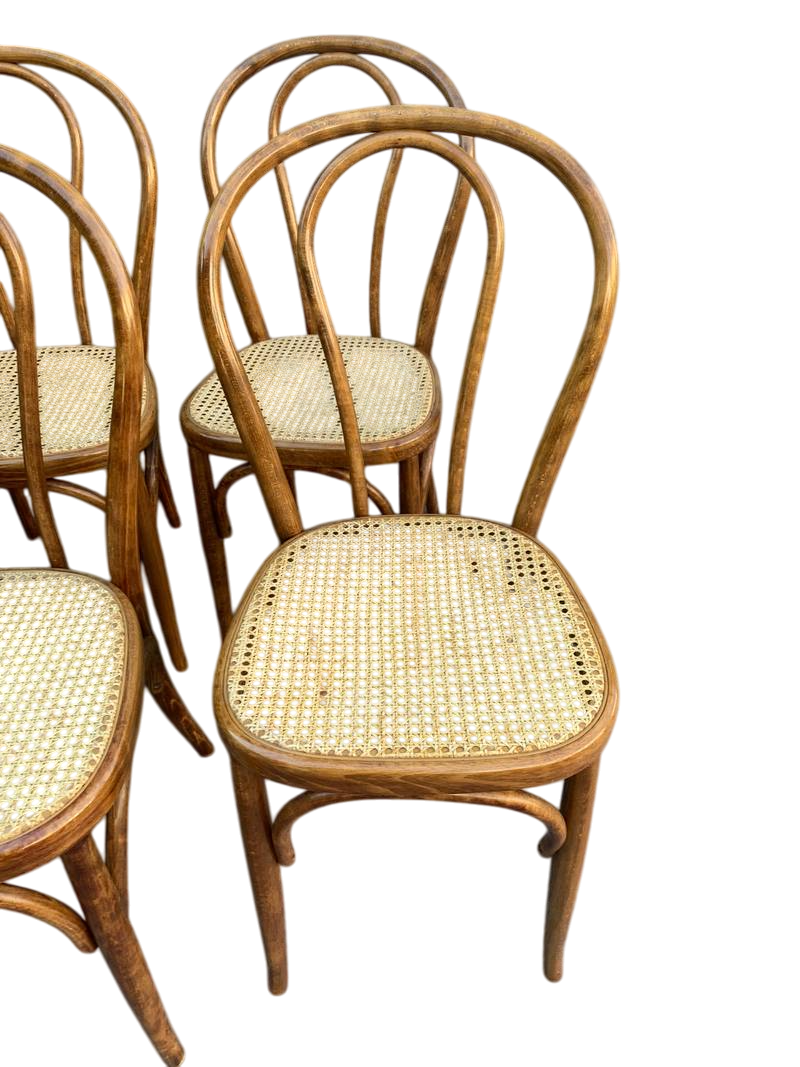 Gruppo di 6 sedie tipo Thonet paglia di Vienna legno curvato dei primi del 900