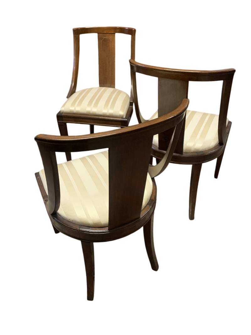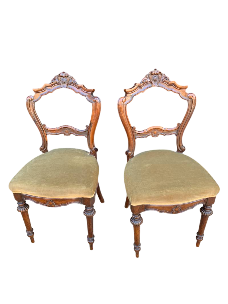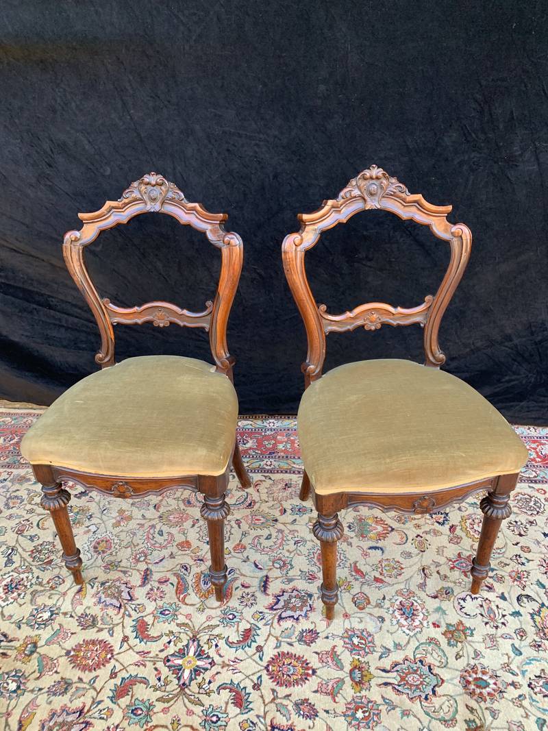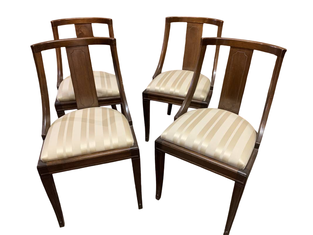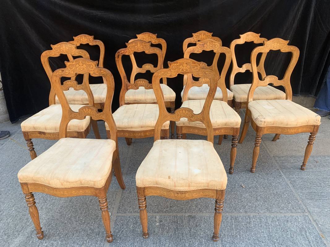 Gruppo di 6 sedie Carlo X in noce sedute imbottite tessuto giallo