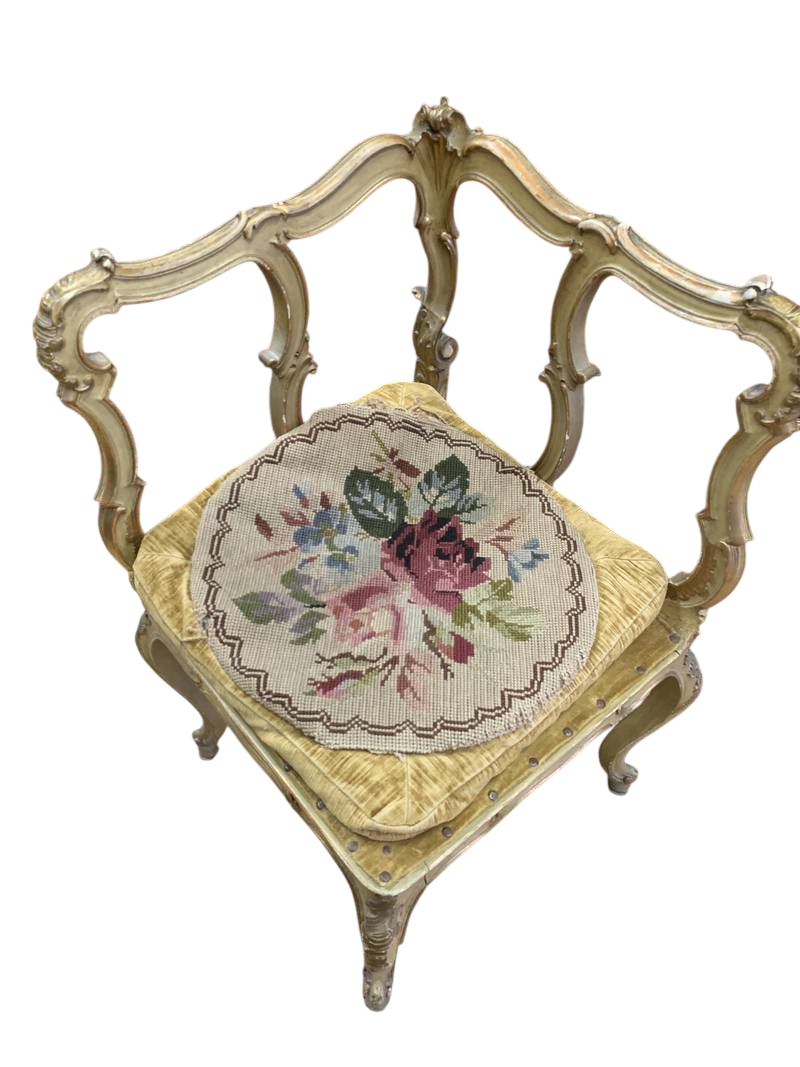 Antico tavolino stile Luigi XV in legno scolpito e laccato primi del XX secolo