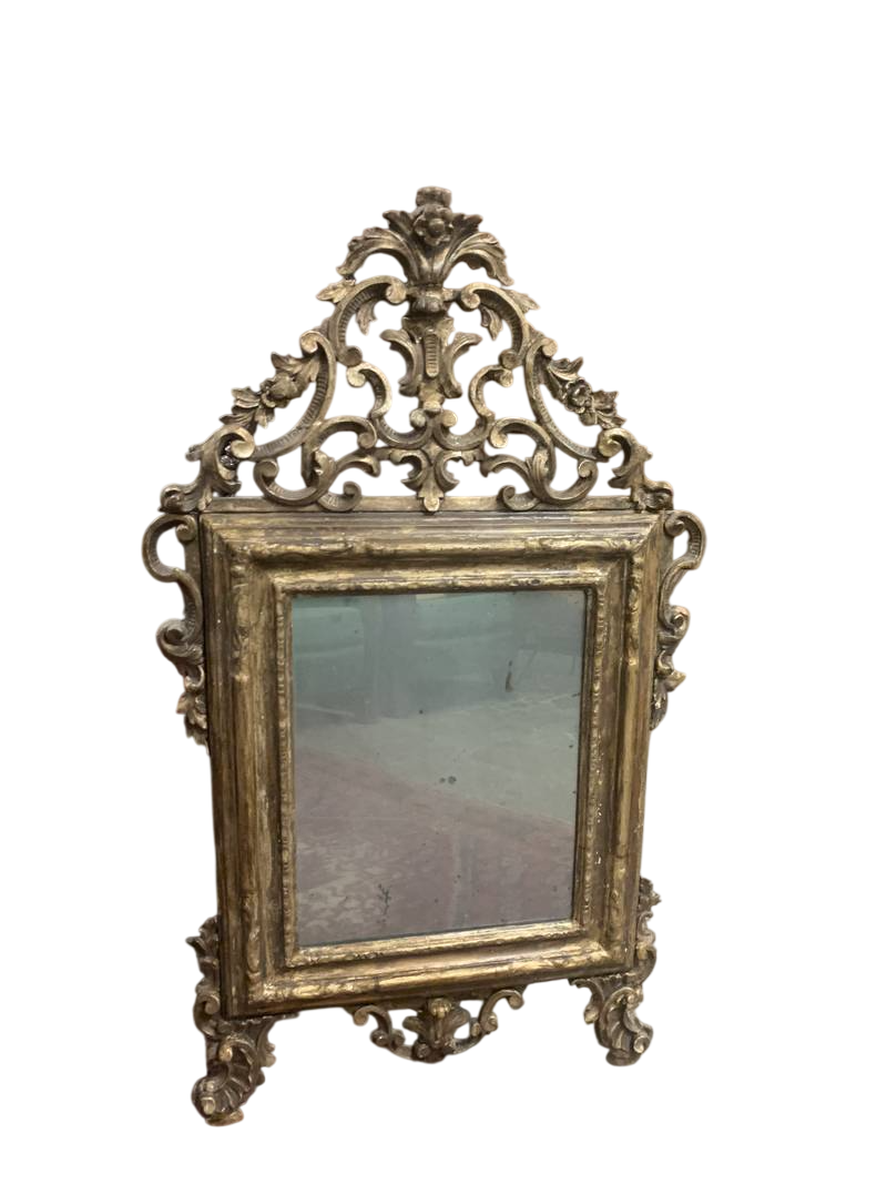 Coppia di antiche specchiere con applique in legno intagliato e argentate XX secolo