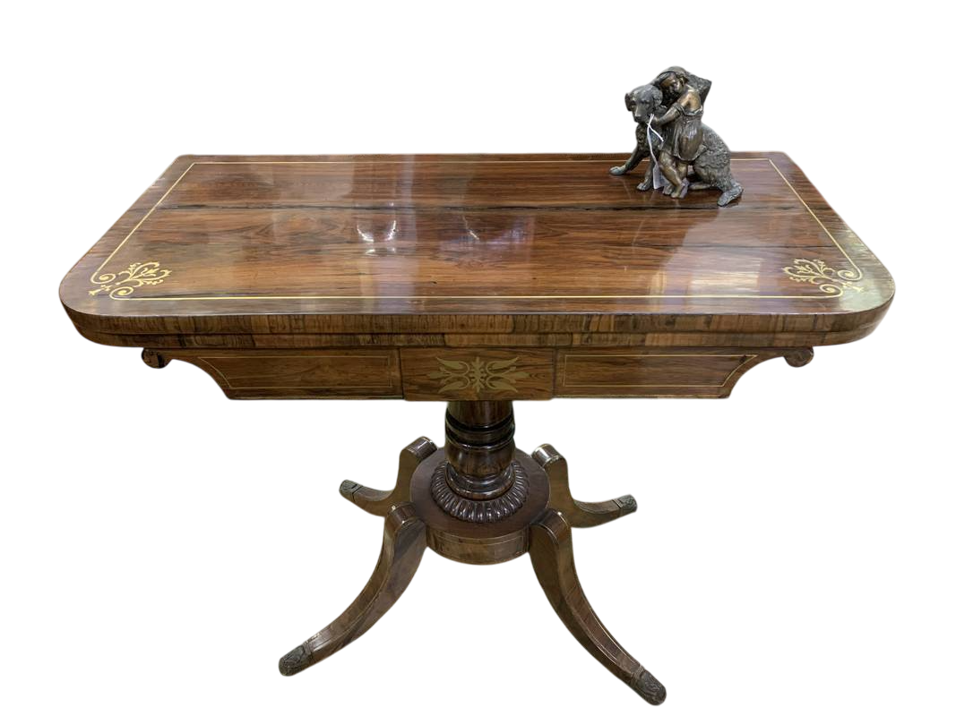 Antico tavolino da gioco inglese a libretto Sheraton palissandro intarsi in ottone Londra