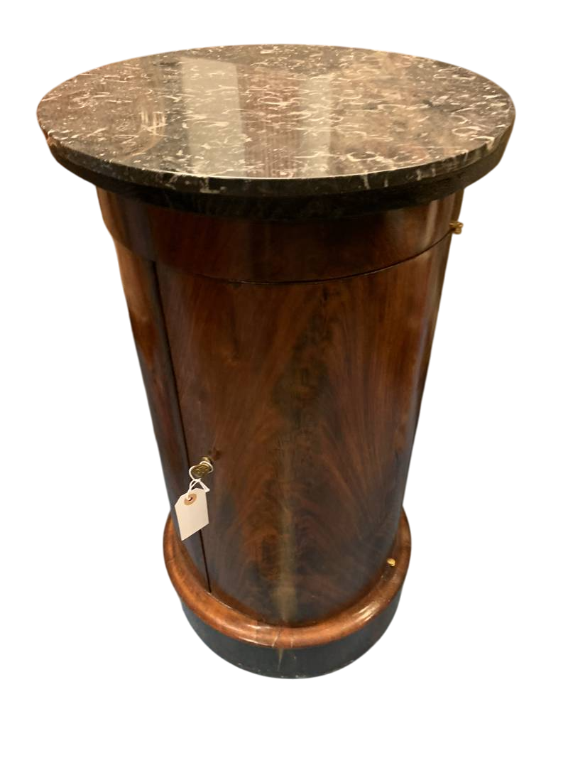 Antico mobiletto comodino Impero a cilindro con piano in marmo epoca XIX secolo