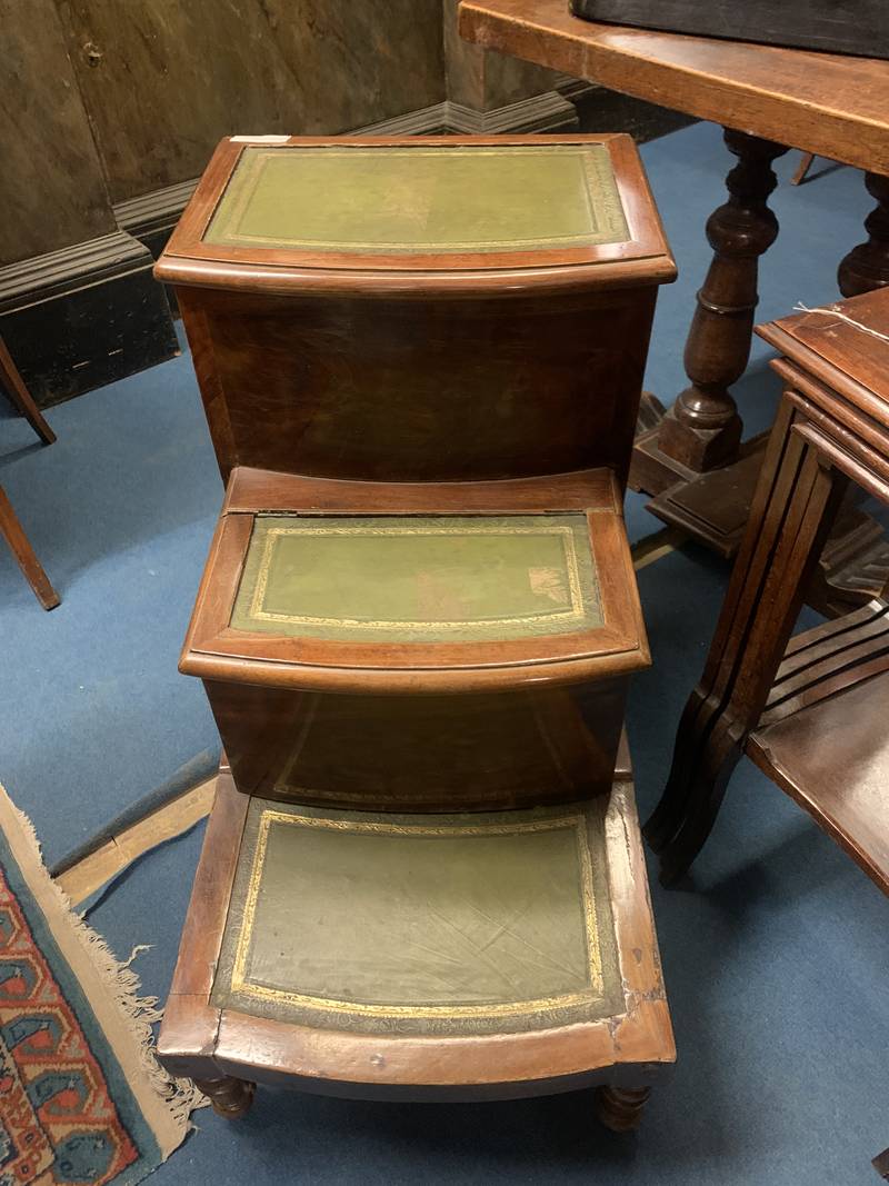 Antica scaletta da biblioteca con pianetti in pelle epoca XIX secolo Inghilterra