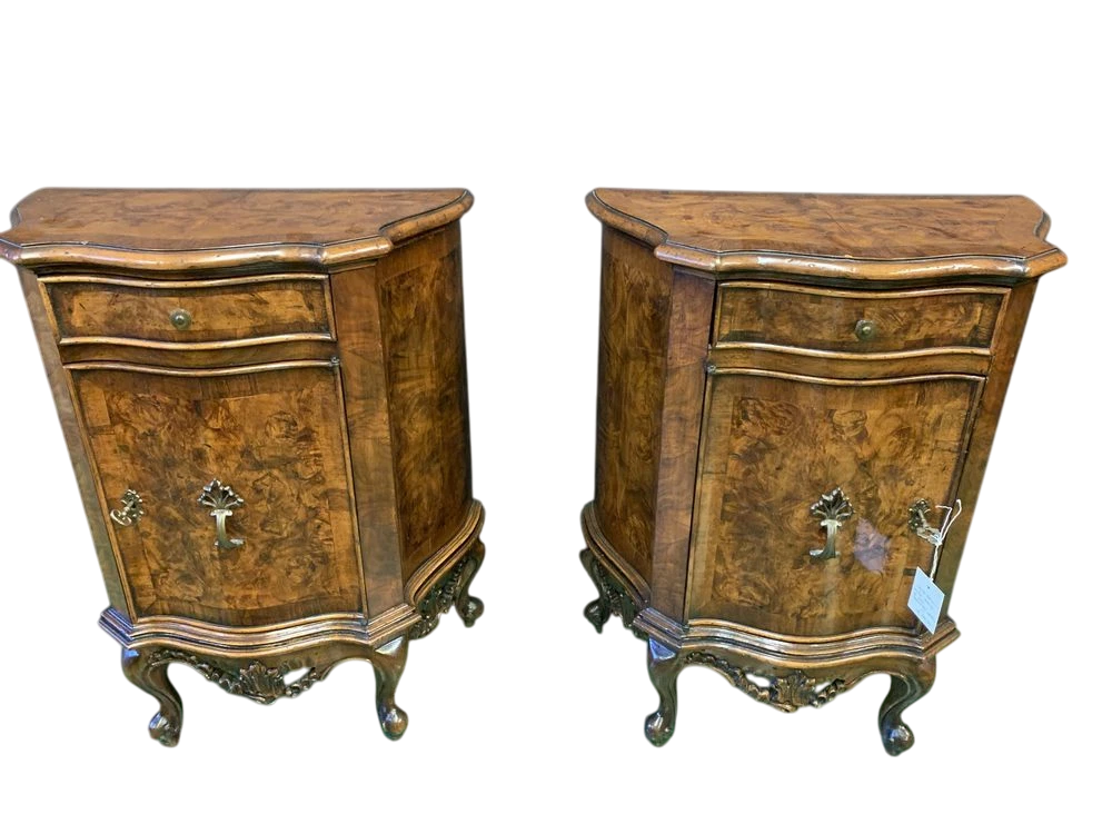 Coppia di comodini in radica di noce linea mossa epoca XX secolo