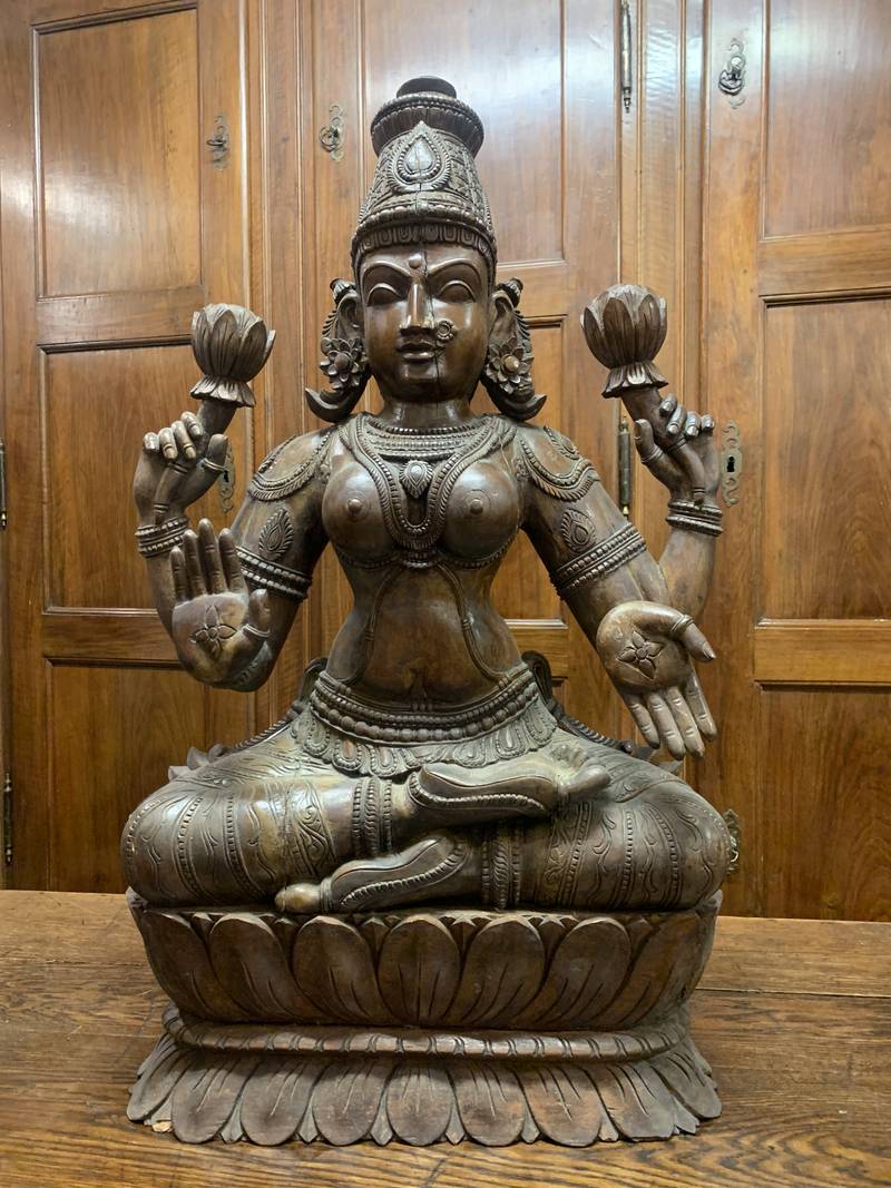 Grande statua lignea Lakshmi la Dea dell’abbondanza della bellezza e Fortuna epoca 800