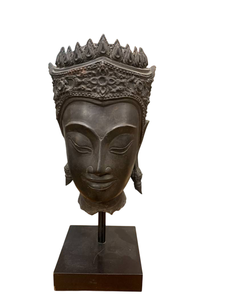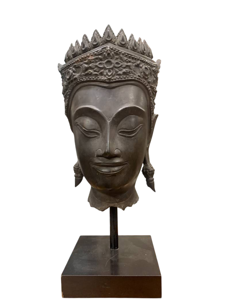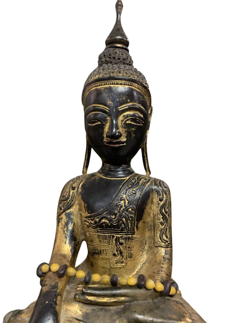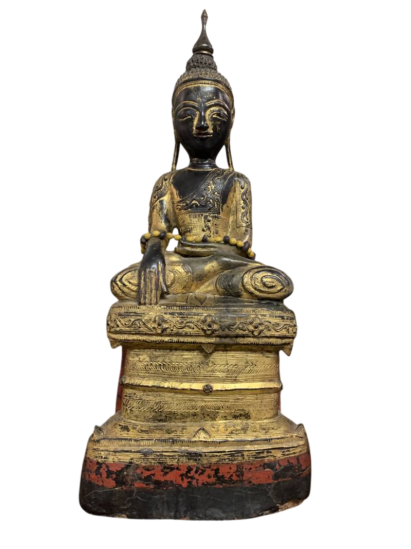 Scultura orientale lignea Budda orientale seduto dorato in patina Birmania