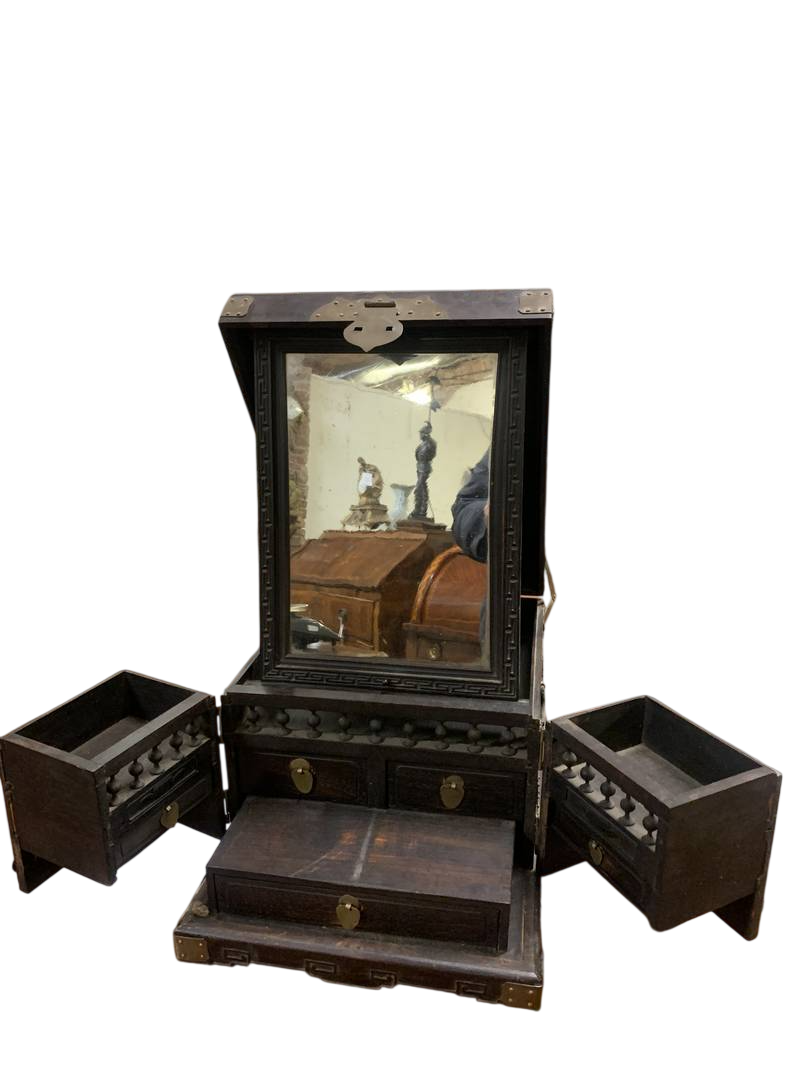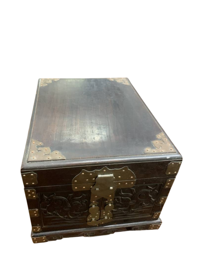 Antica porta da tempio in legno intagliato orientale con fenice e figure orientali