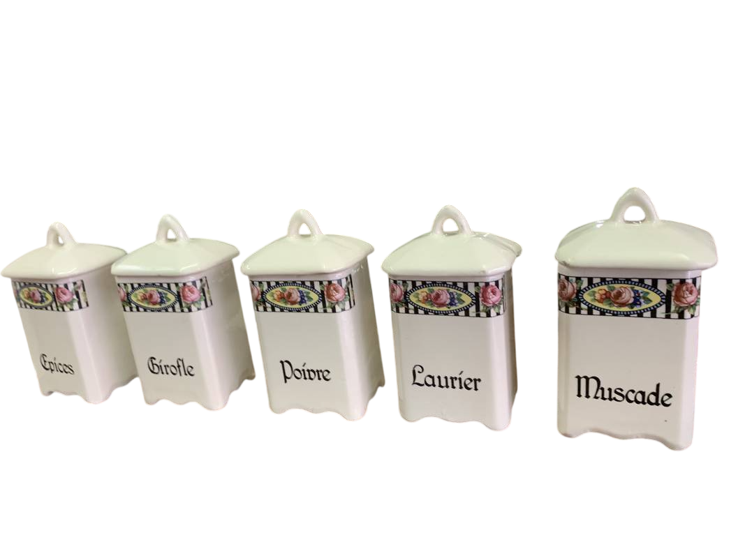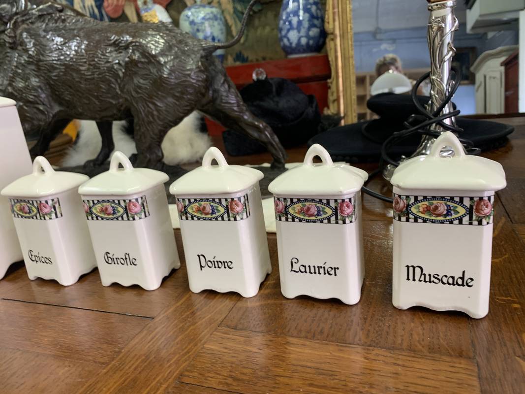 10 vasi da dispensa porta spezie porcellana francesi Liberty dei primi del 900
