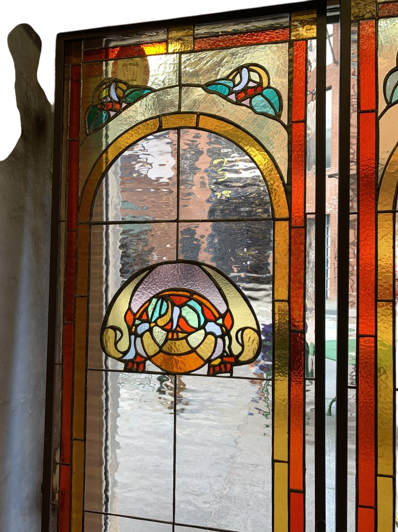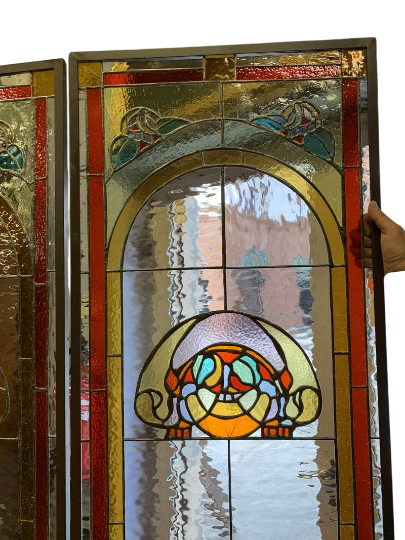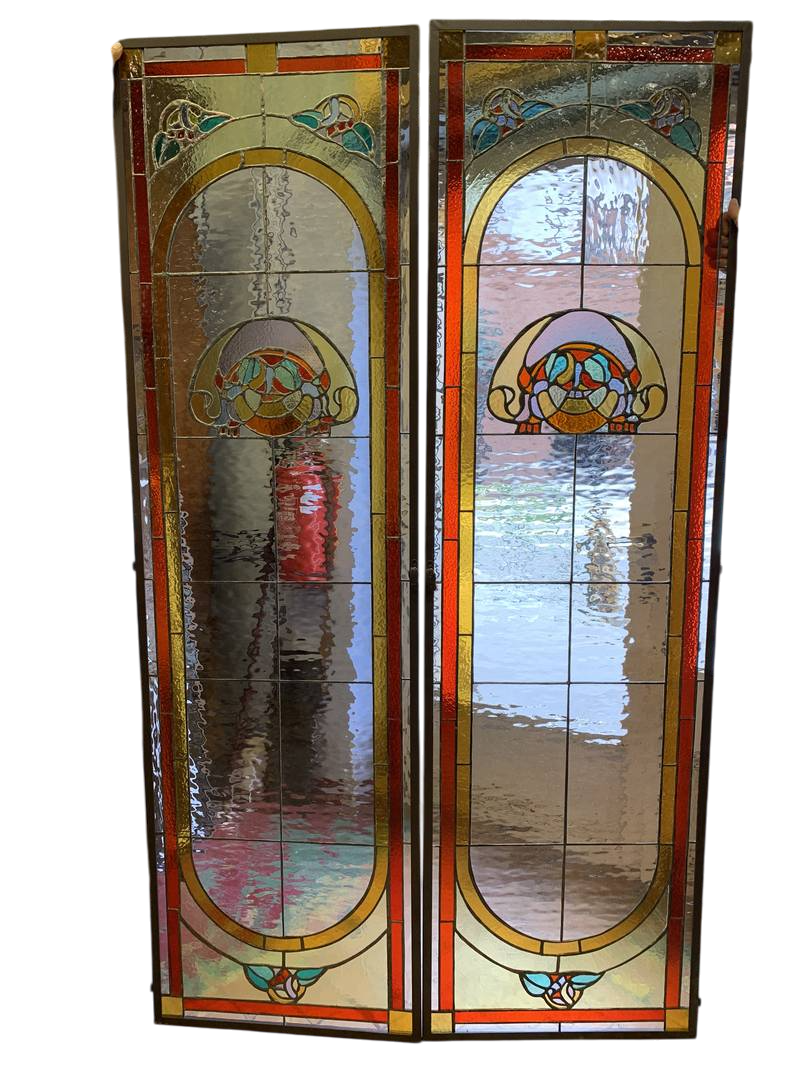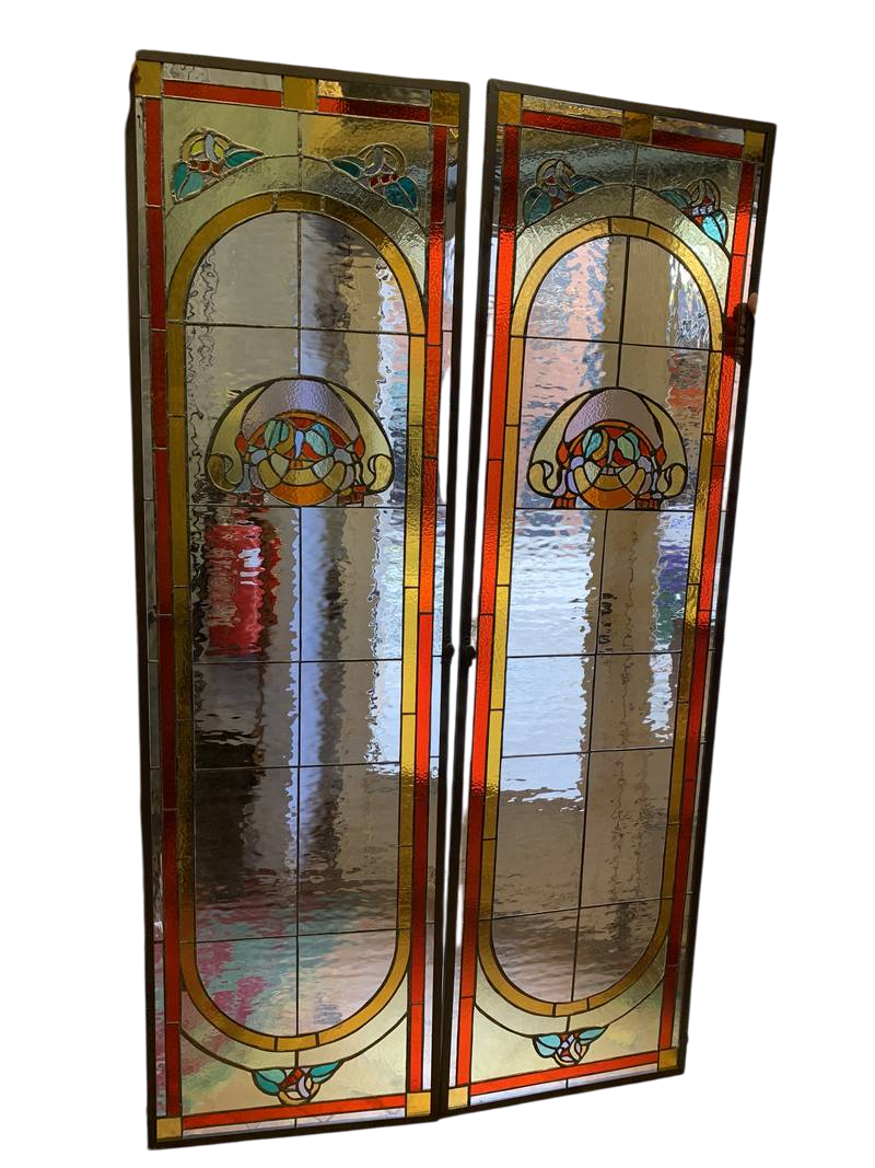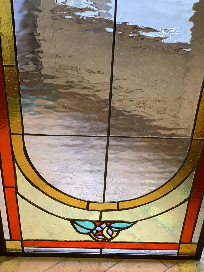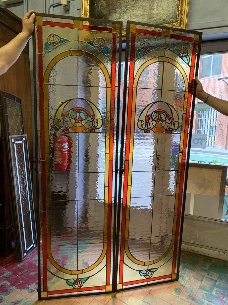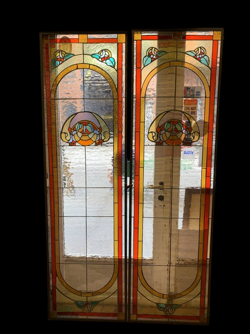 2 Antiche porte vetri cattedrali decori Art Nouveau inizi del 900 H 207 X L 60