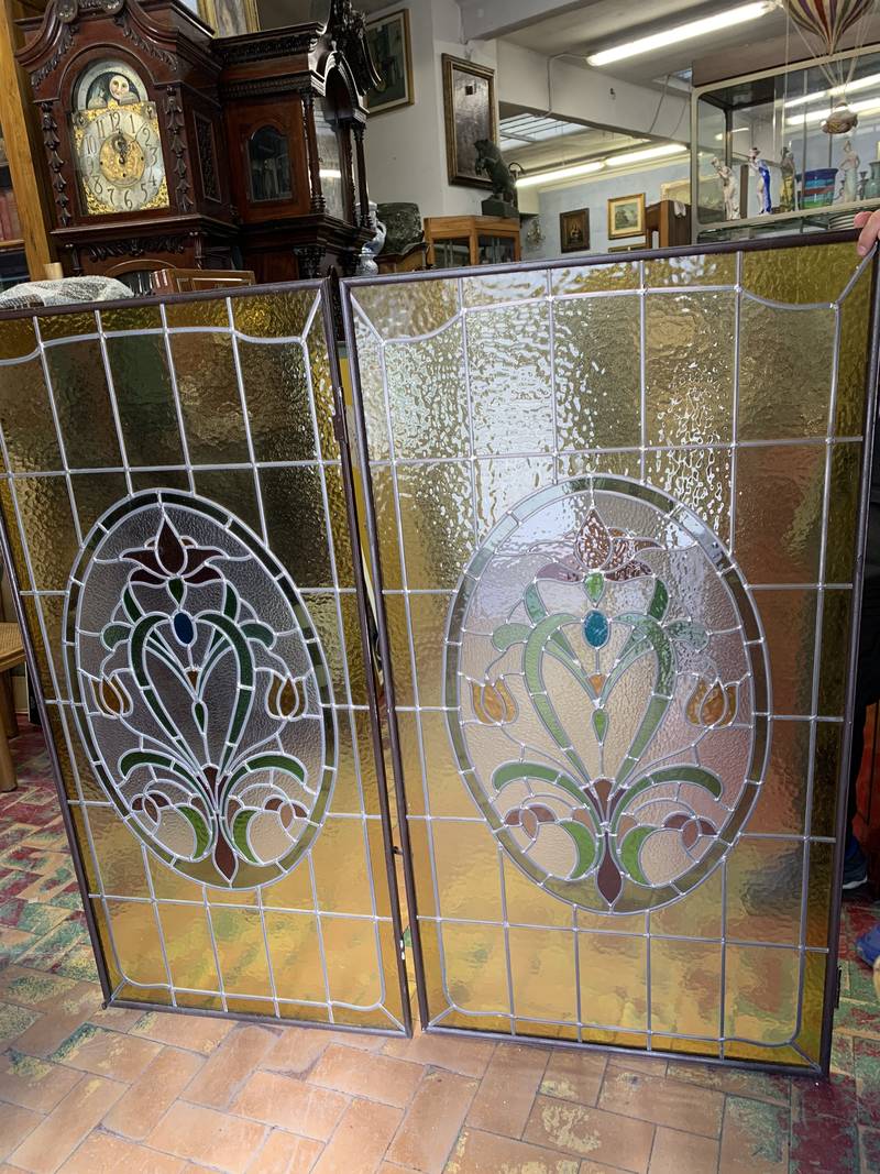 2 Antiche porte vetri cattedrali Liberty purissimo inizi del XX secolo