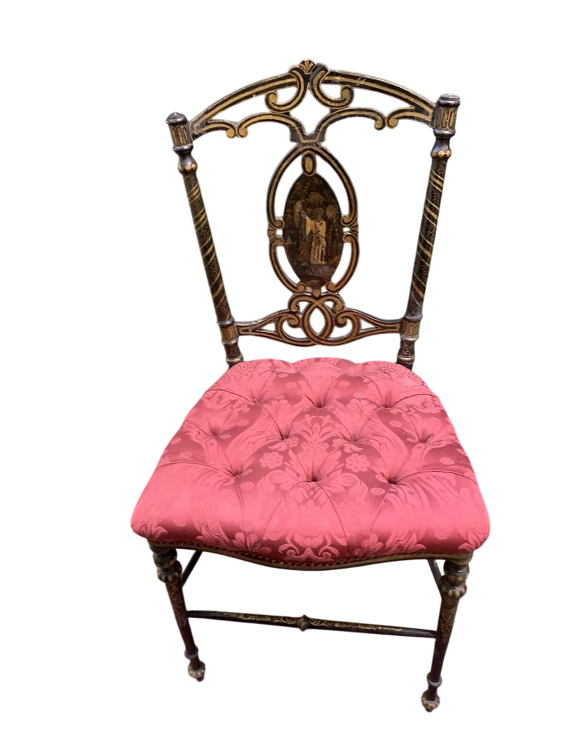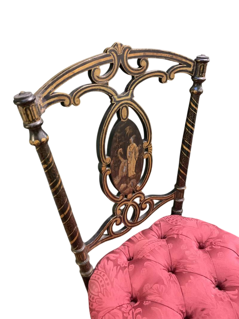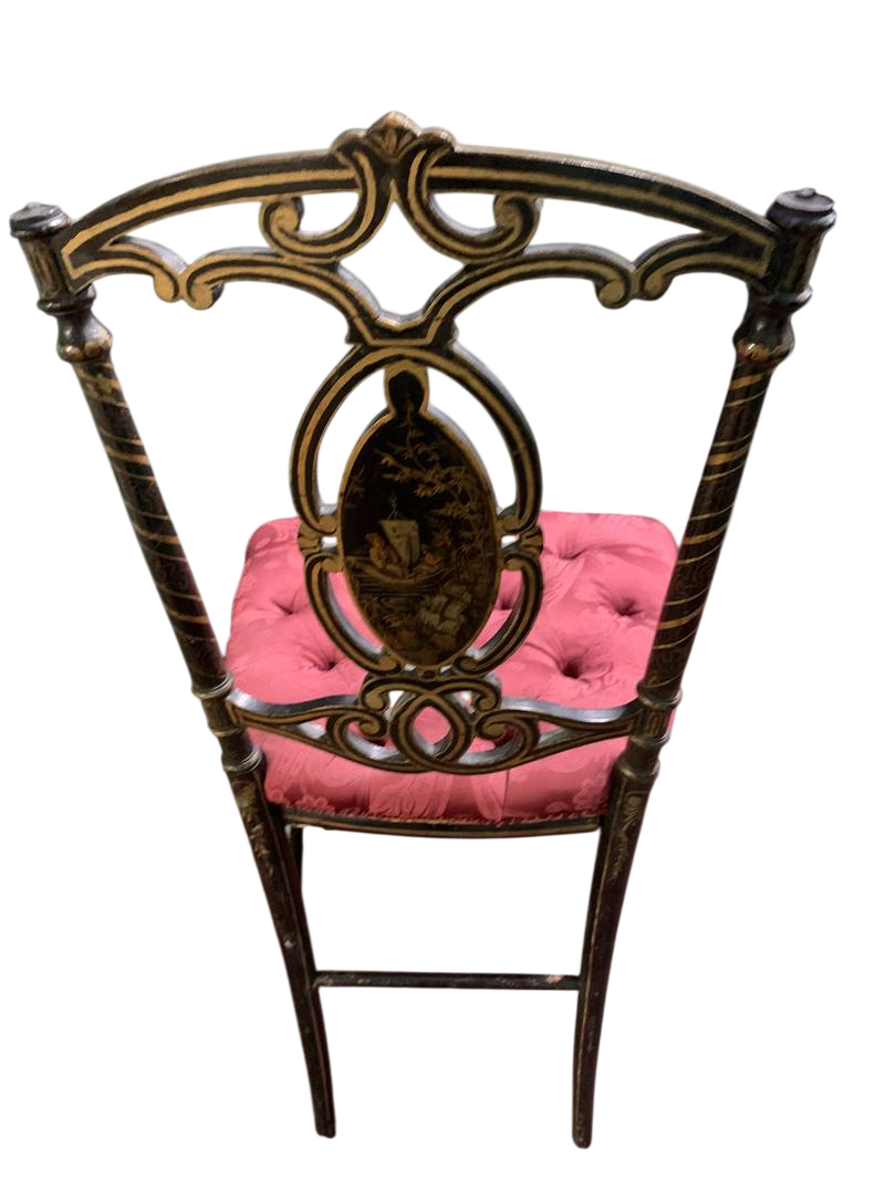 2 antiche sedie Napoleone III lacca nera decori a chinoiserie dorati Epoca XIX secolo