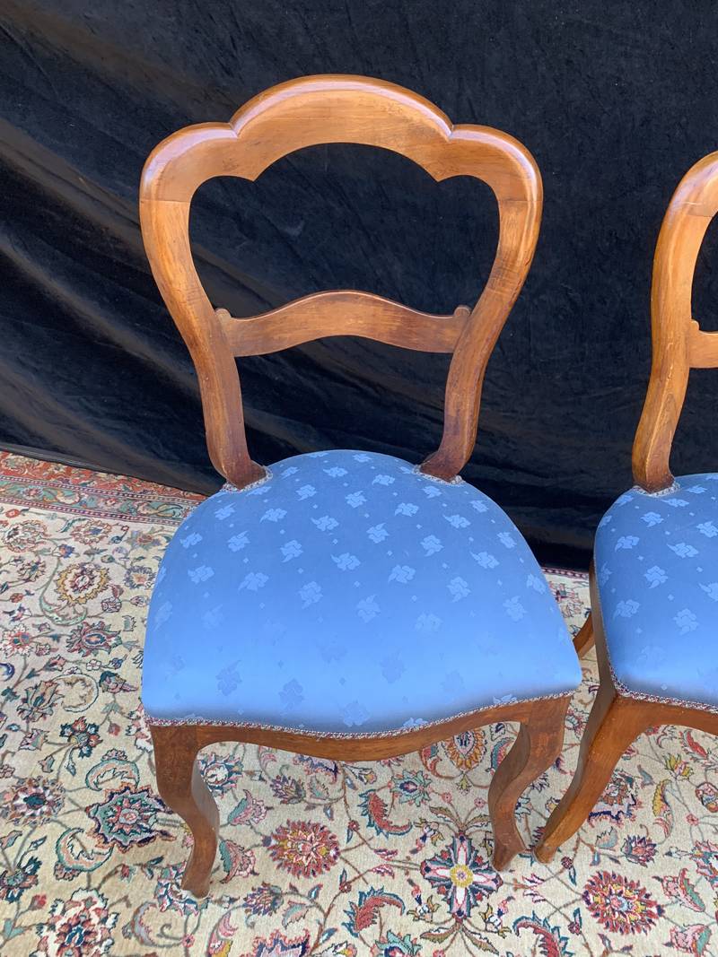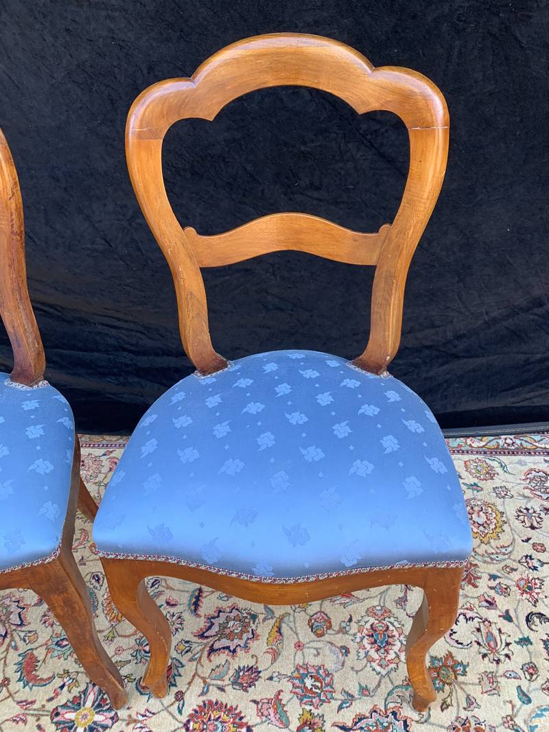 2 antiche sedie poltroncine dell’800 tessuto blu carta da zucchero