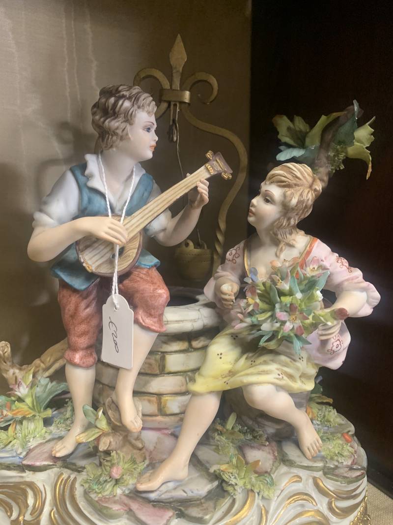 Statuina gruppo Capodimonte porcellana policroma il pozzo Napoli XX secolo