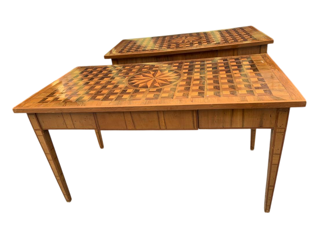 2 antichi tavoli a marquetterie fine intarsio Lombardia epoca XVIII secolo