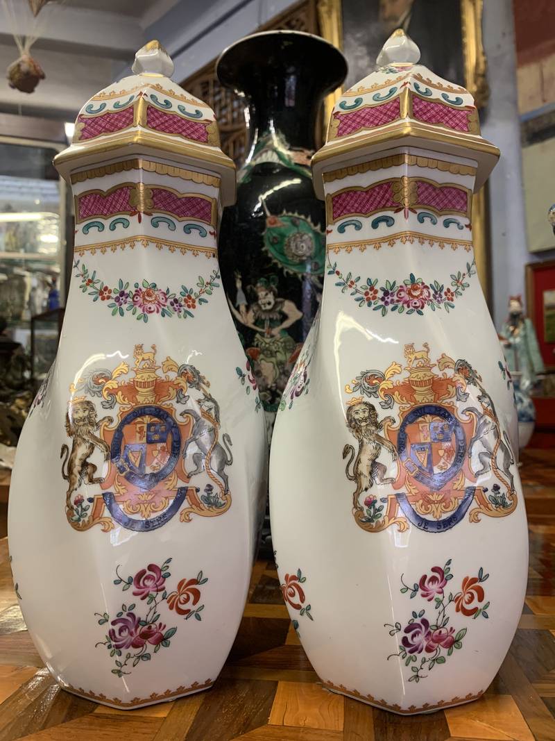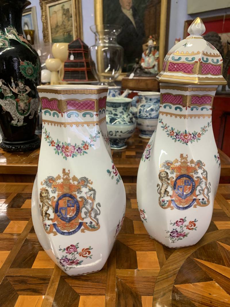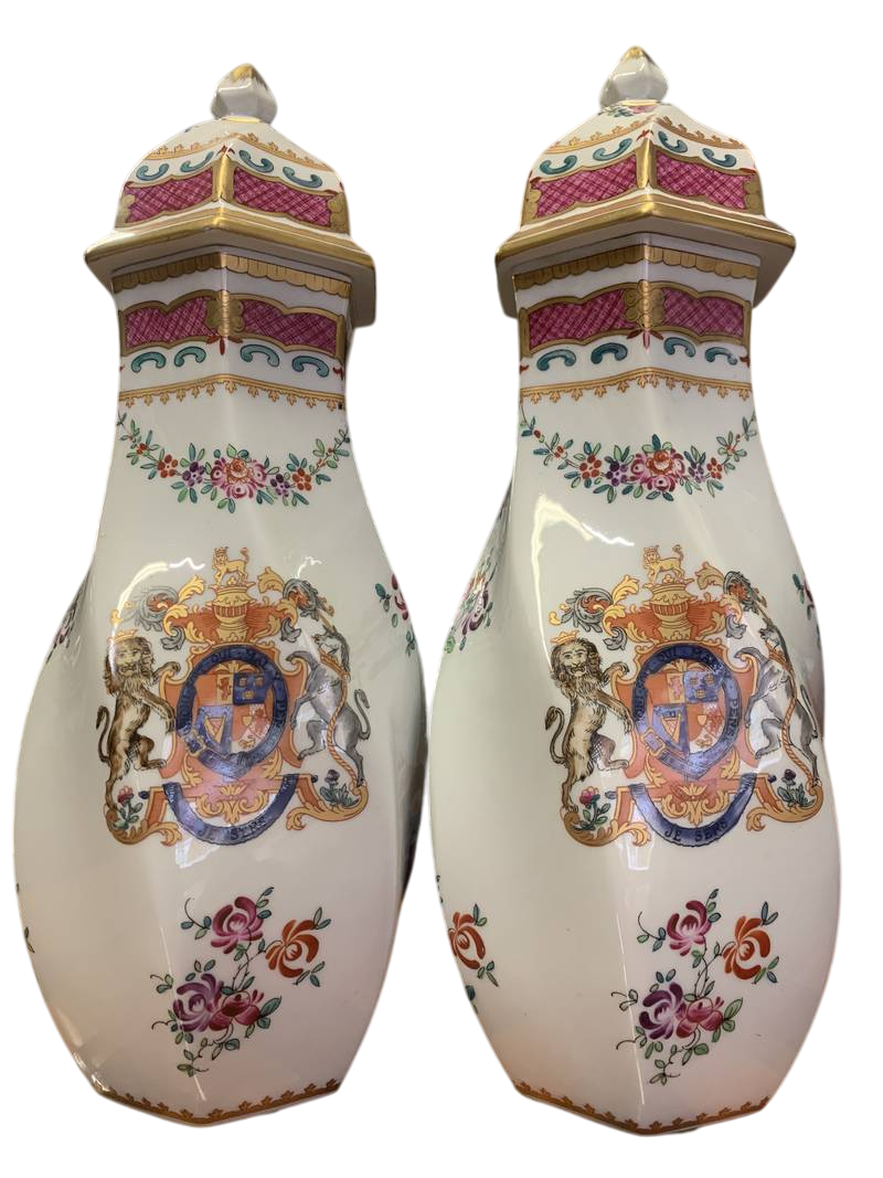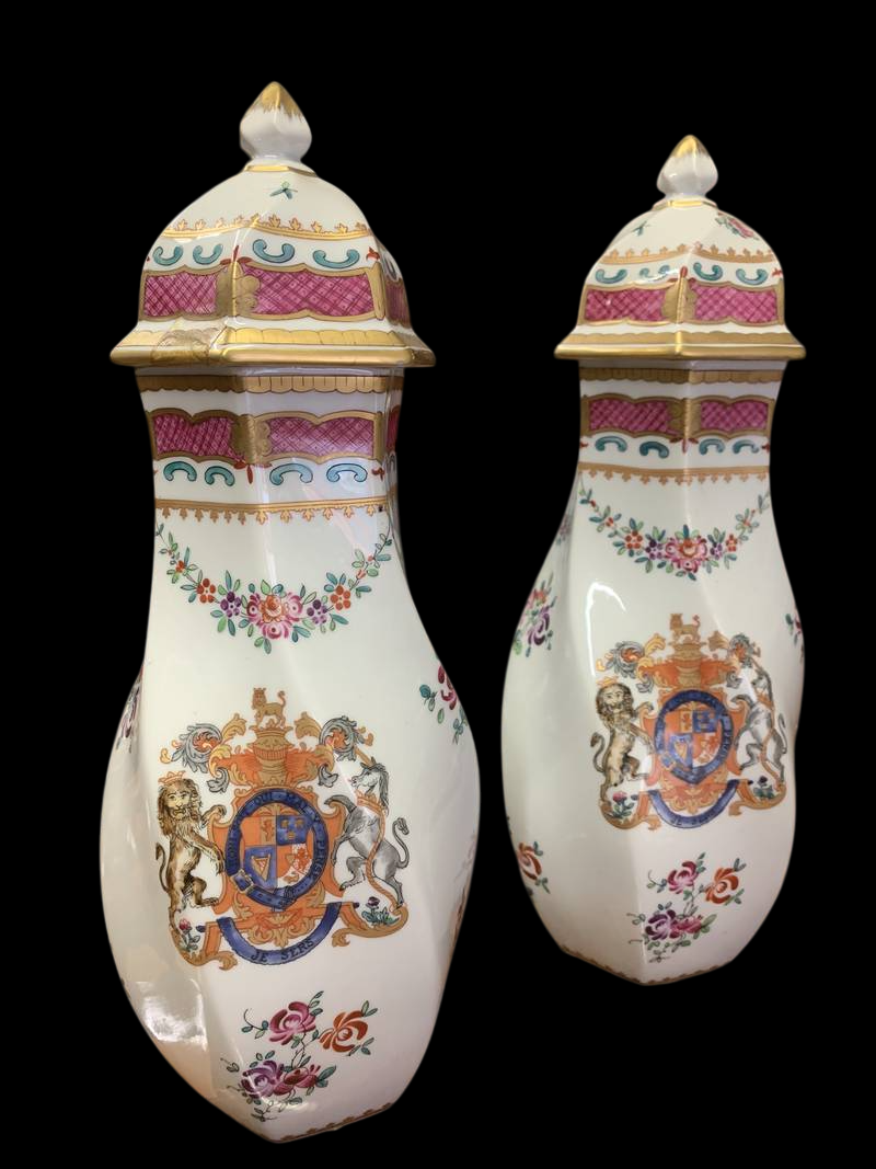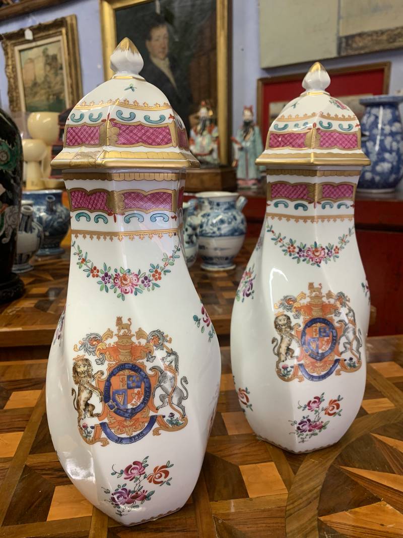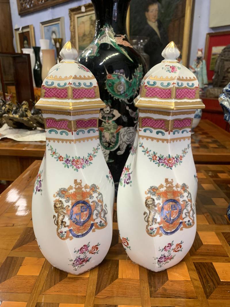 2 antichi vasi da camino porcelaine de Paris epoca XIX secolo con stemma araldico