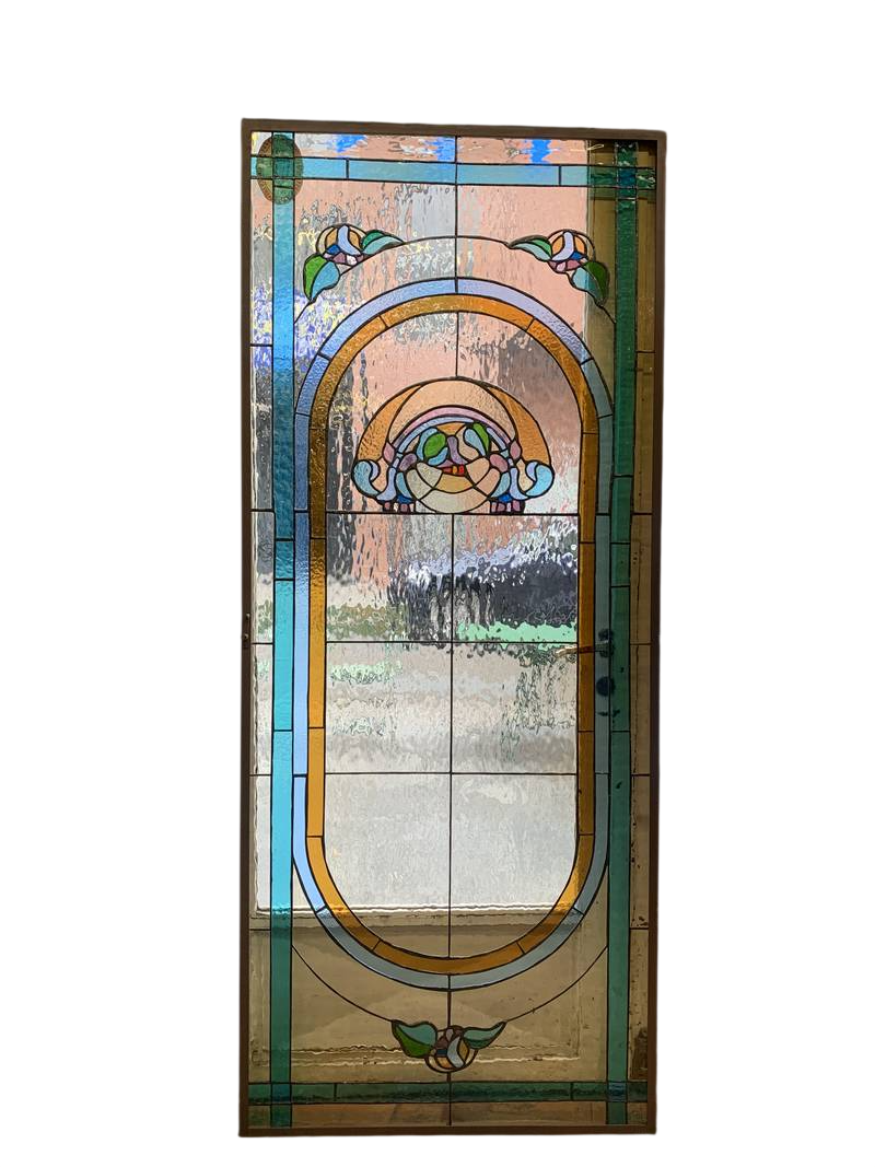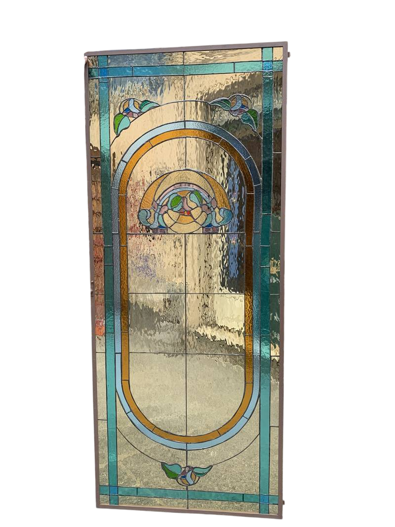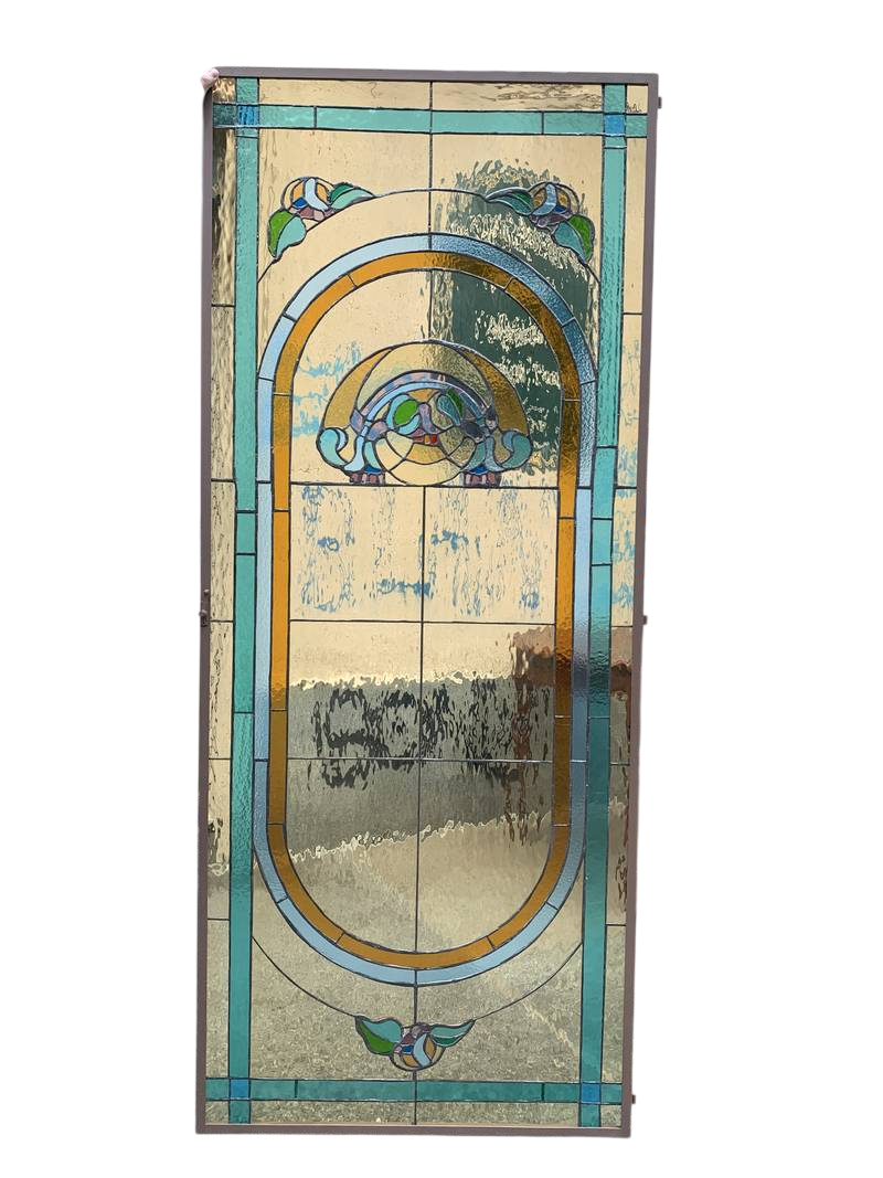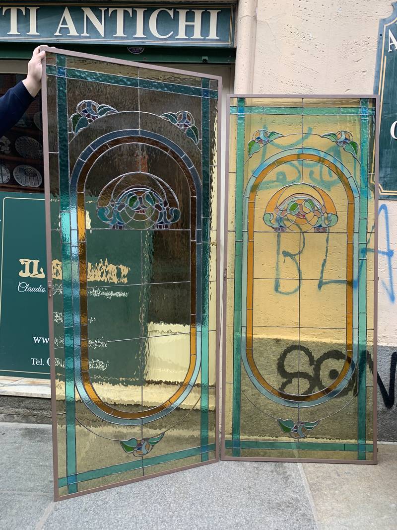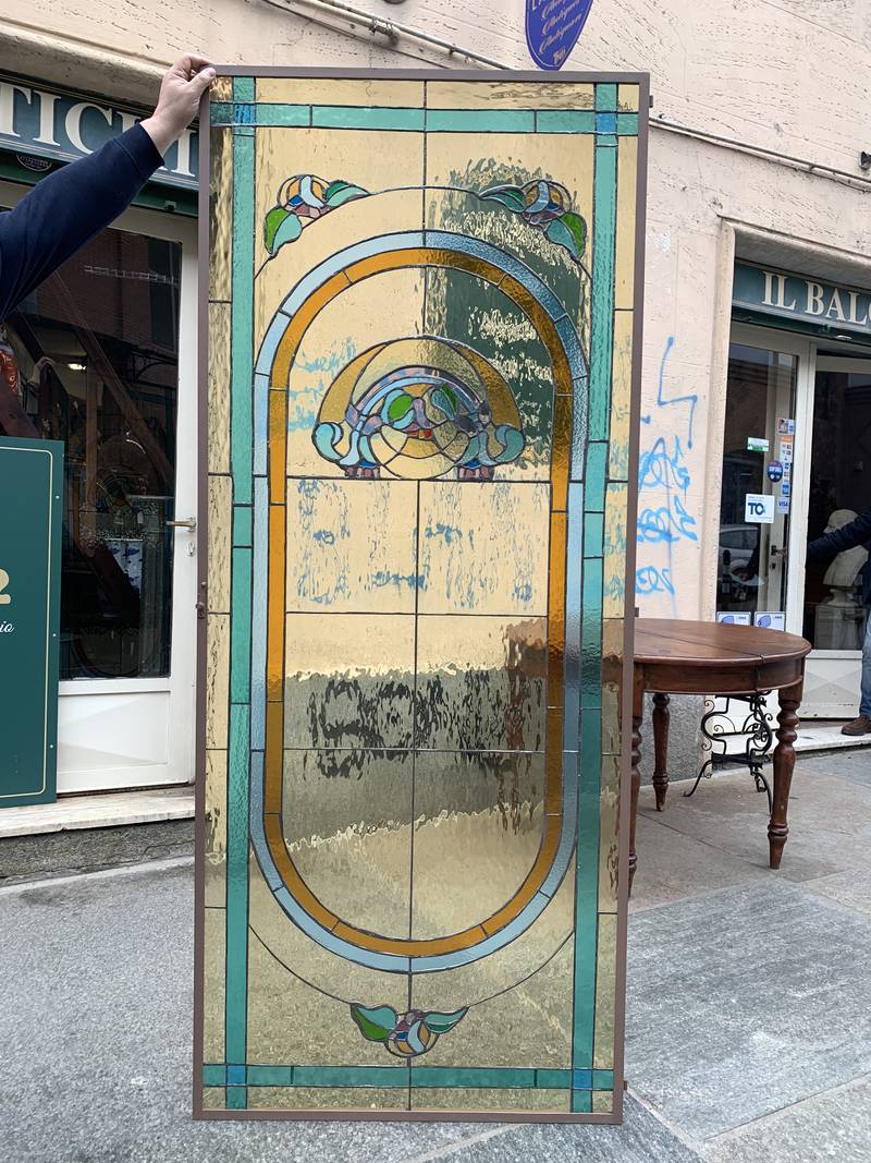 2 antichi vetri cattedrali Liberty Art Nouveau turchesi 86 x 206
