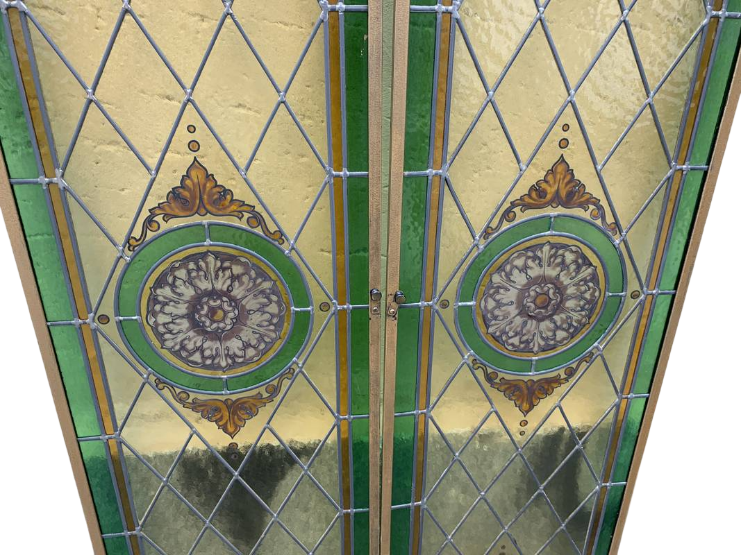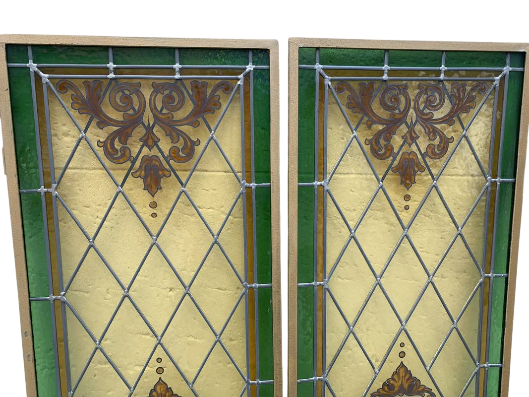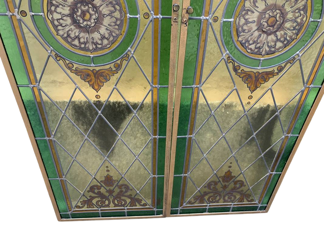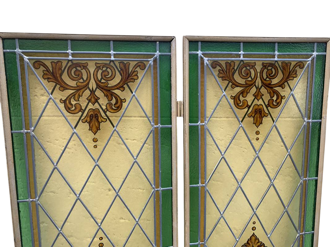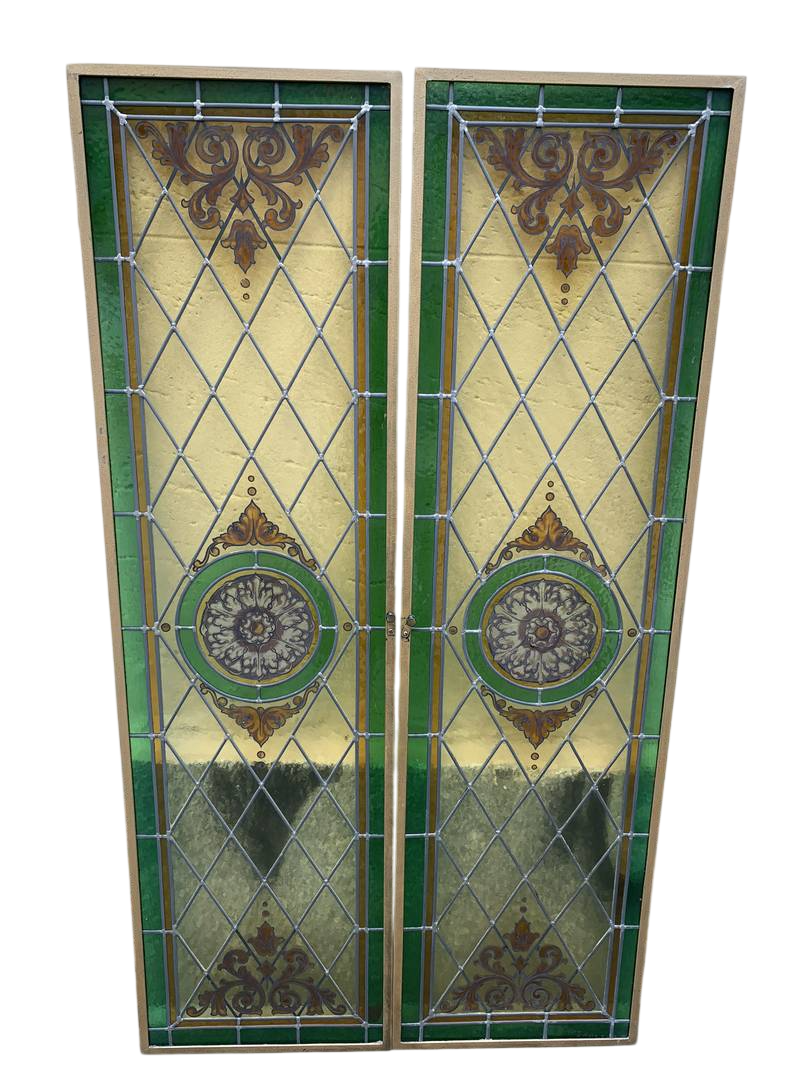 2 antichi vetri cattedrali Liberty verdi H 150 X 41