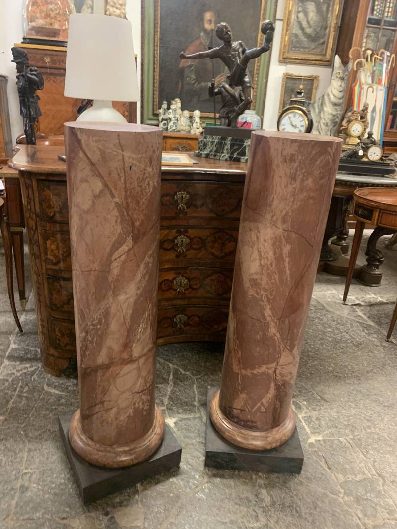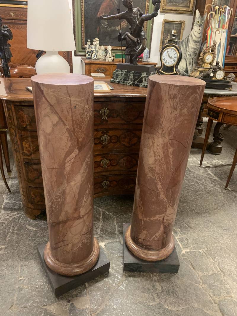 2 grandi colonne in legno laccato marmorizzato XX secolo