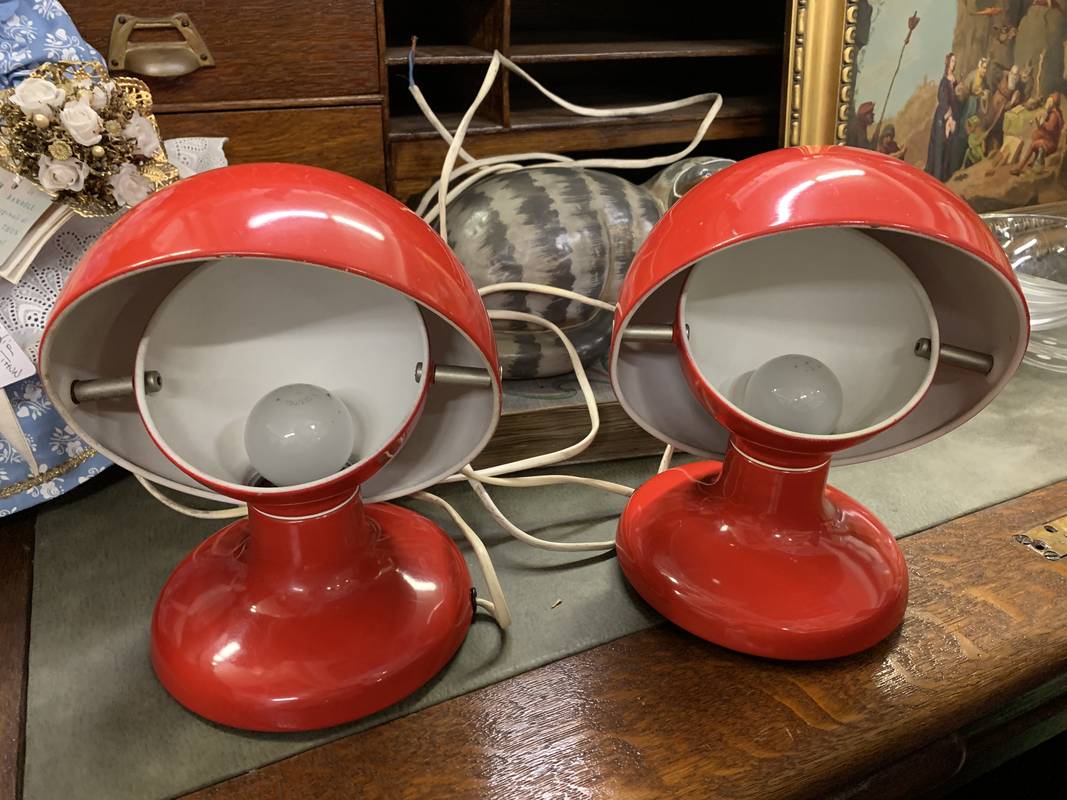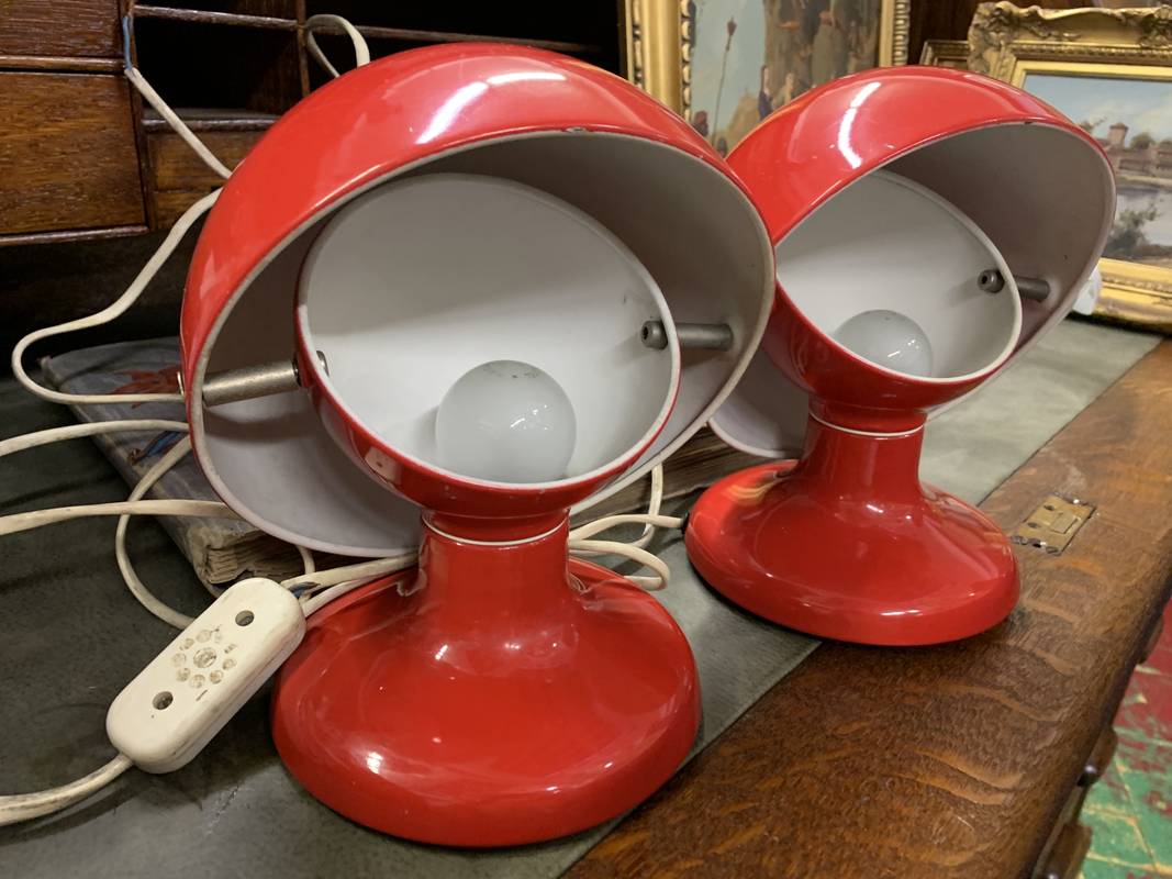 2 lampade space age rosse “Jucker” design Afra e Tobia Scarpa per Flos negli anni ’60.