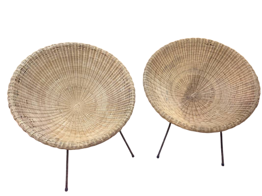 2 poltrone poltroncine in vimini rattan midollino anni 60