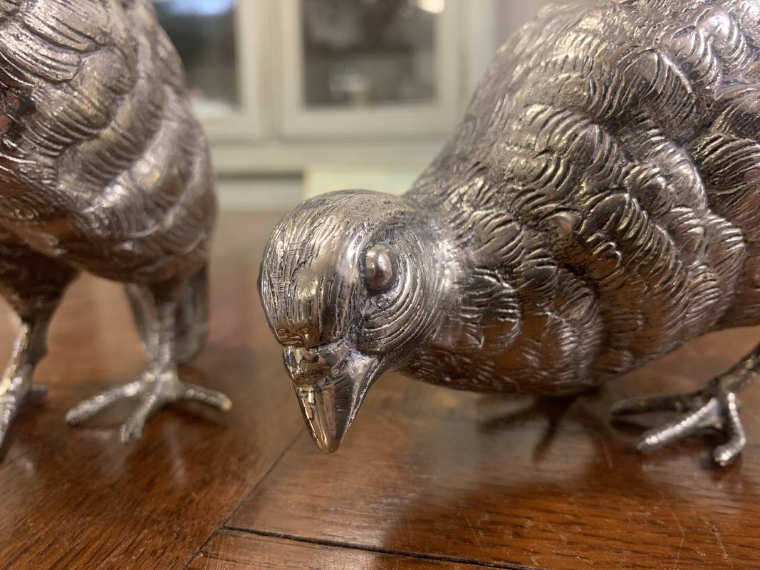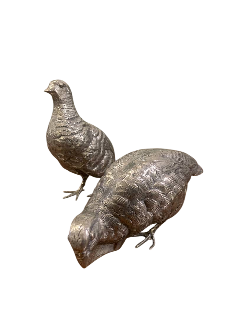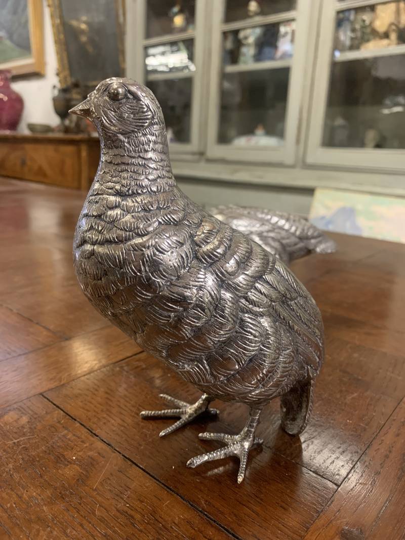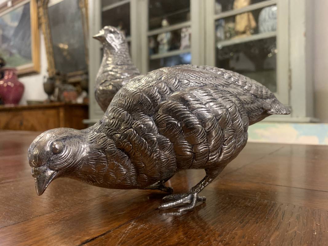 2 statuette argentate pernici quaglie