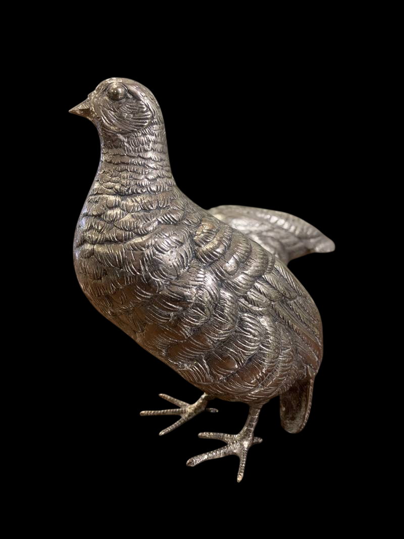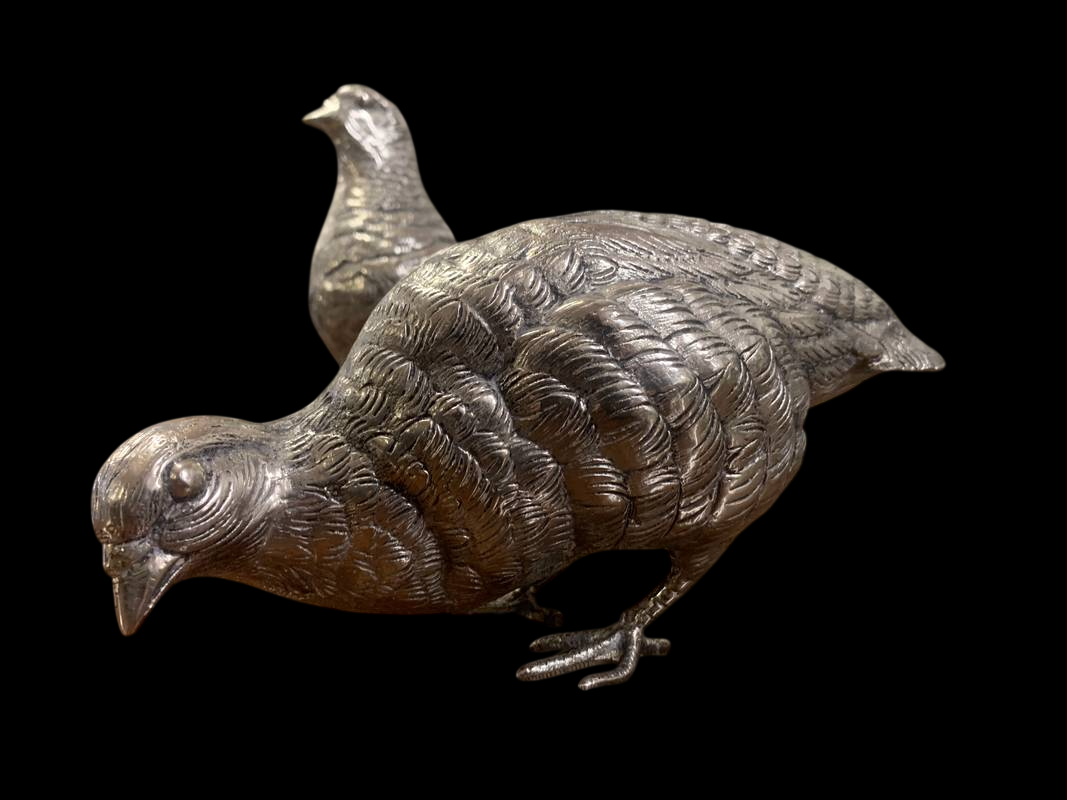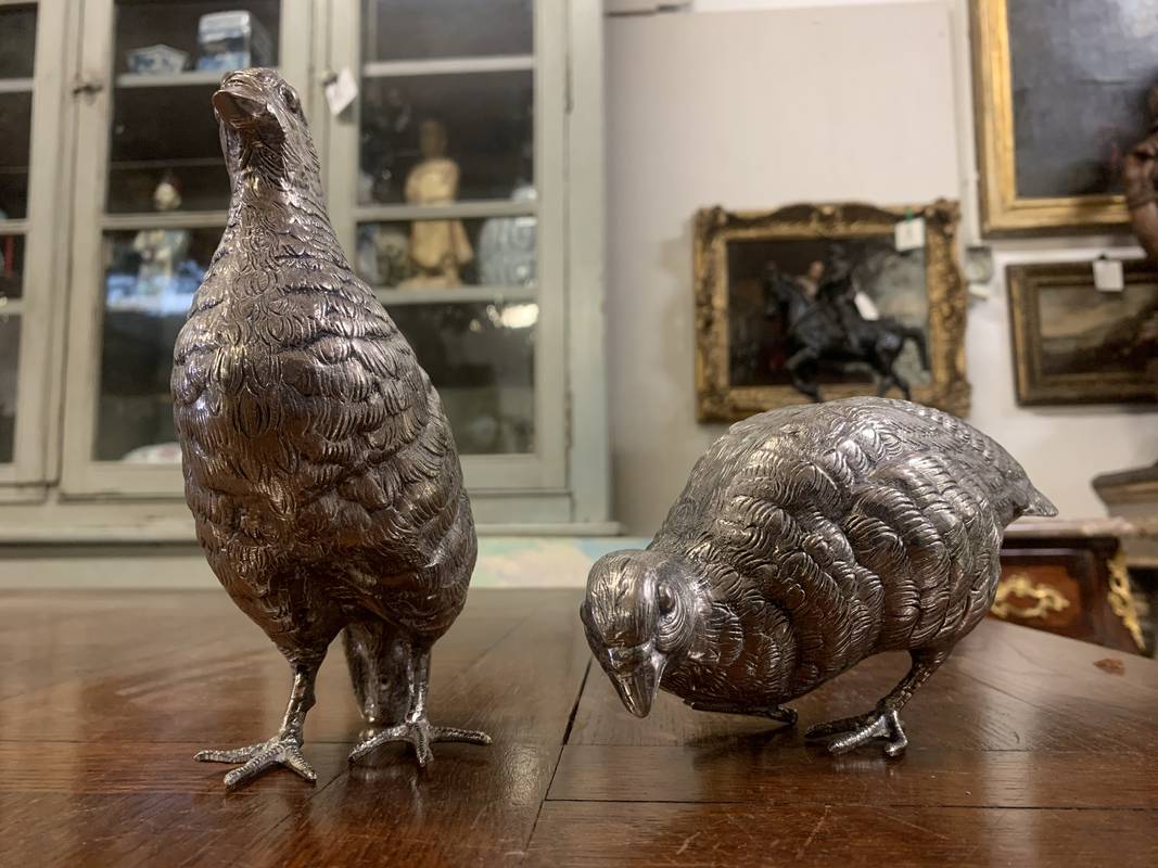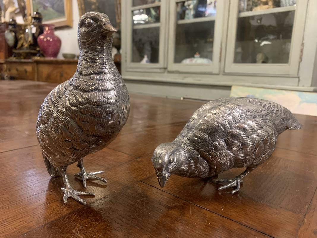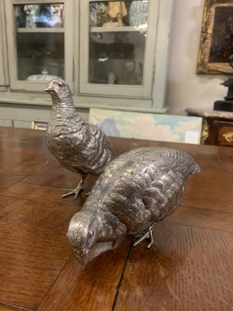 2 statuette argentate pernici quaglie