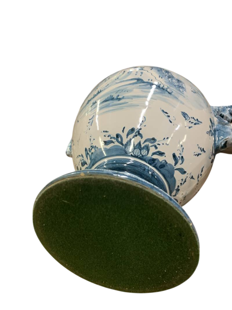 2 vasi ad anfora ceramica d’arte Albisola del XX secolo, dipinte in bianco e blu.