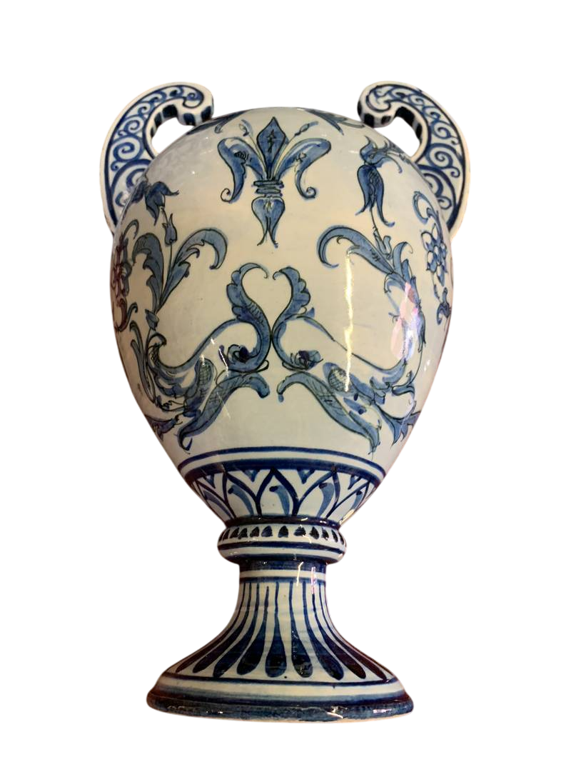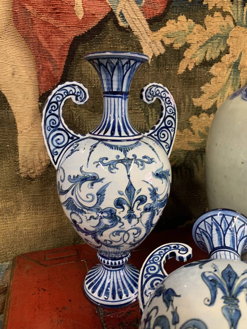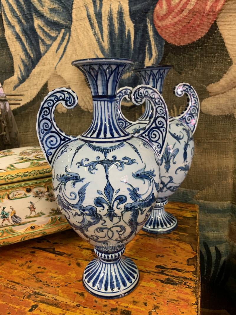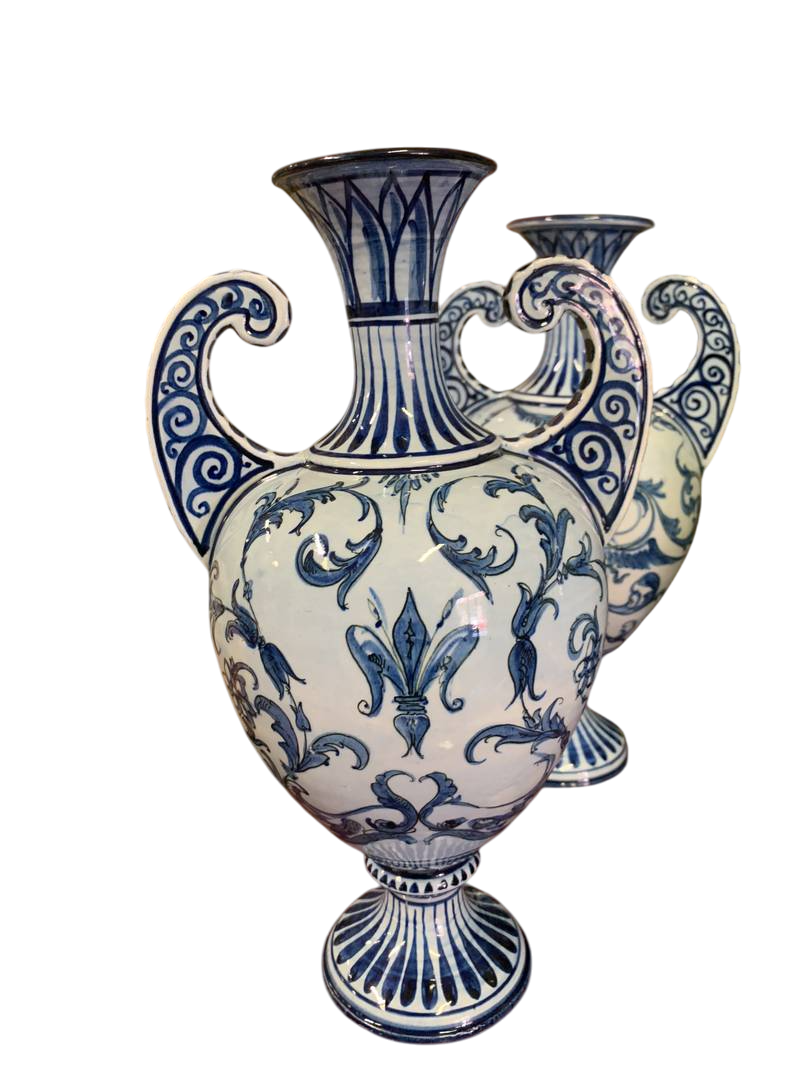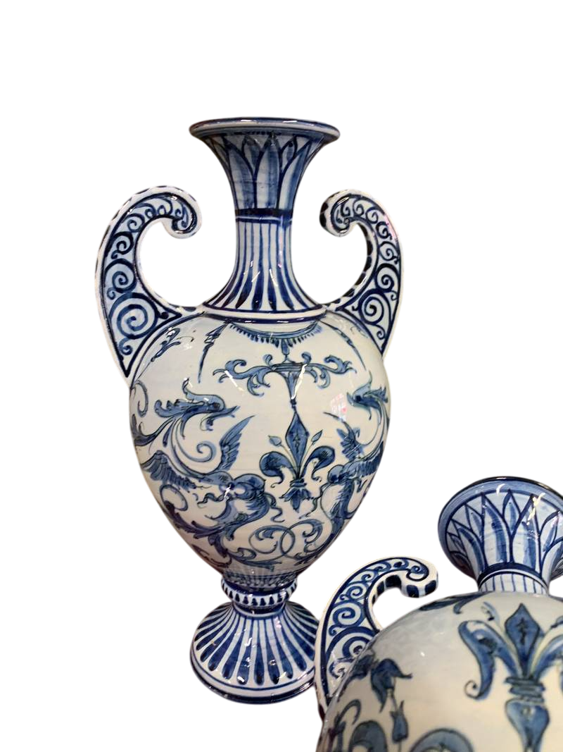 2 vasi orcioli con anse vasi maiolica italiana manifattura Albisola decori rinascimentali