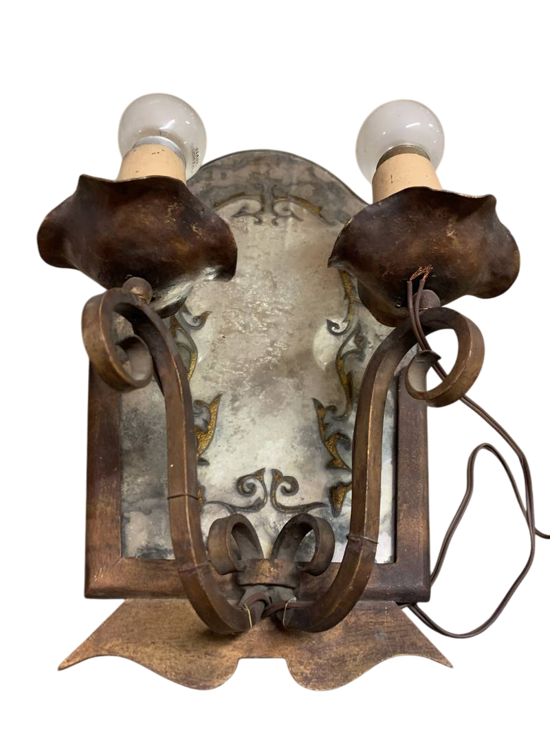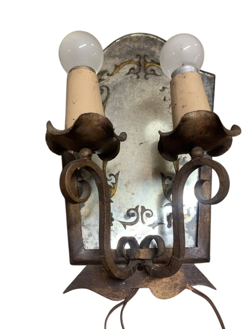 4 antiche applique a due fiamme con specchierine ferro forgiato Arte povera