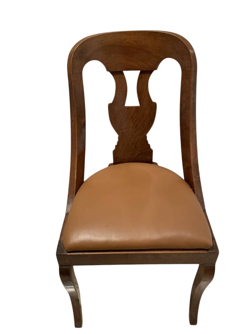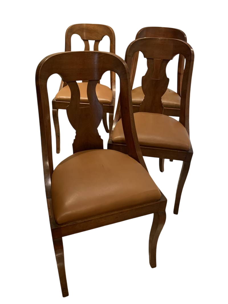 Gruppo di quattro sedie a gondola in noce sedute imbottite epoca Neoclassica XIX secolo