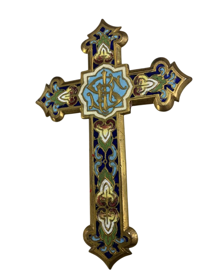 Acquasantiera cloisonnet smalti turchesi su bronzo Francia XIX secolo